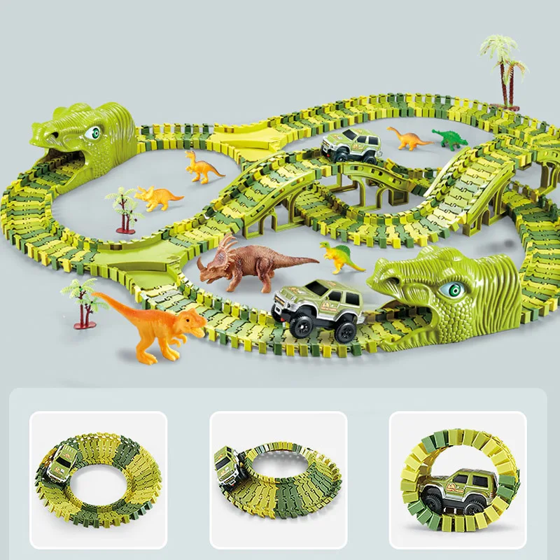 211 шт. динозавр железная дорога игрушка автомобиль Сделай Сам сборка горки трек гоночный набор игрушки для детей Интерактивные гоночные игры игрушки подарок