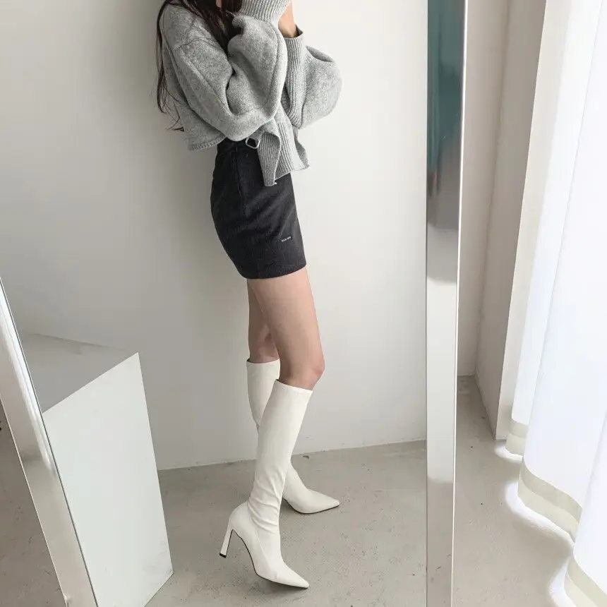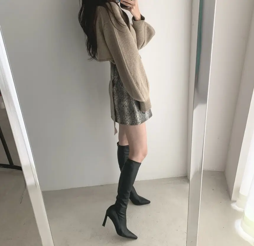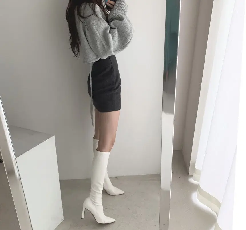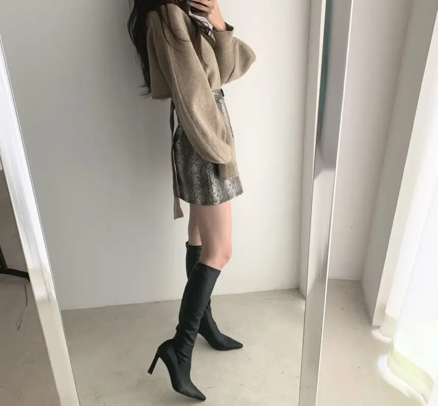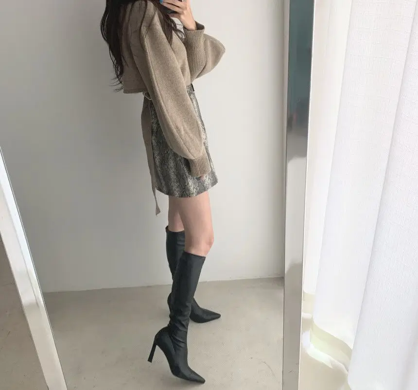 Korean Chic Elegant V-neck Back Lace Up Irregular Lantern Sleeve Knitted Sweater High Waist Bag Hip Woolen Skirt Women Two Piece Set