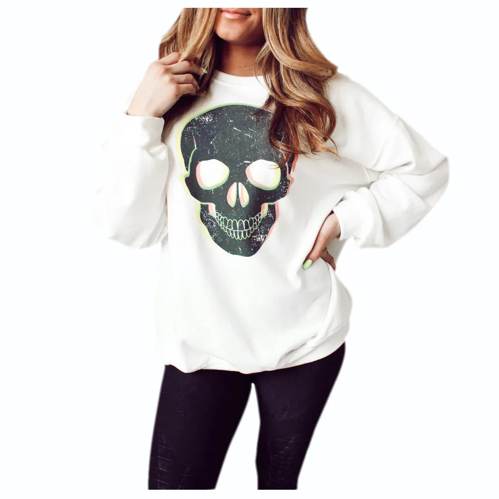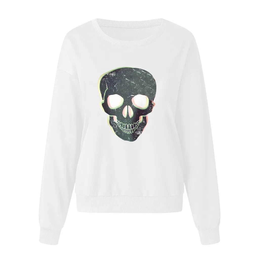 Осенне-зимняя толстовка с принтом черепа без капюшона, белая женская толстовка большого размера, Повседневная Толстовка большого размера, топы на каждый день