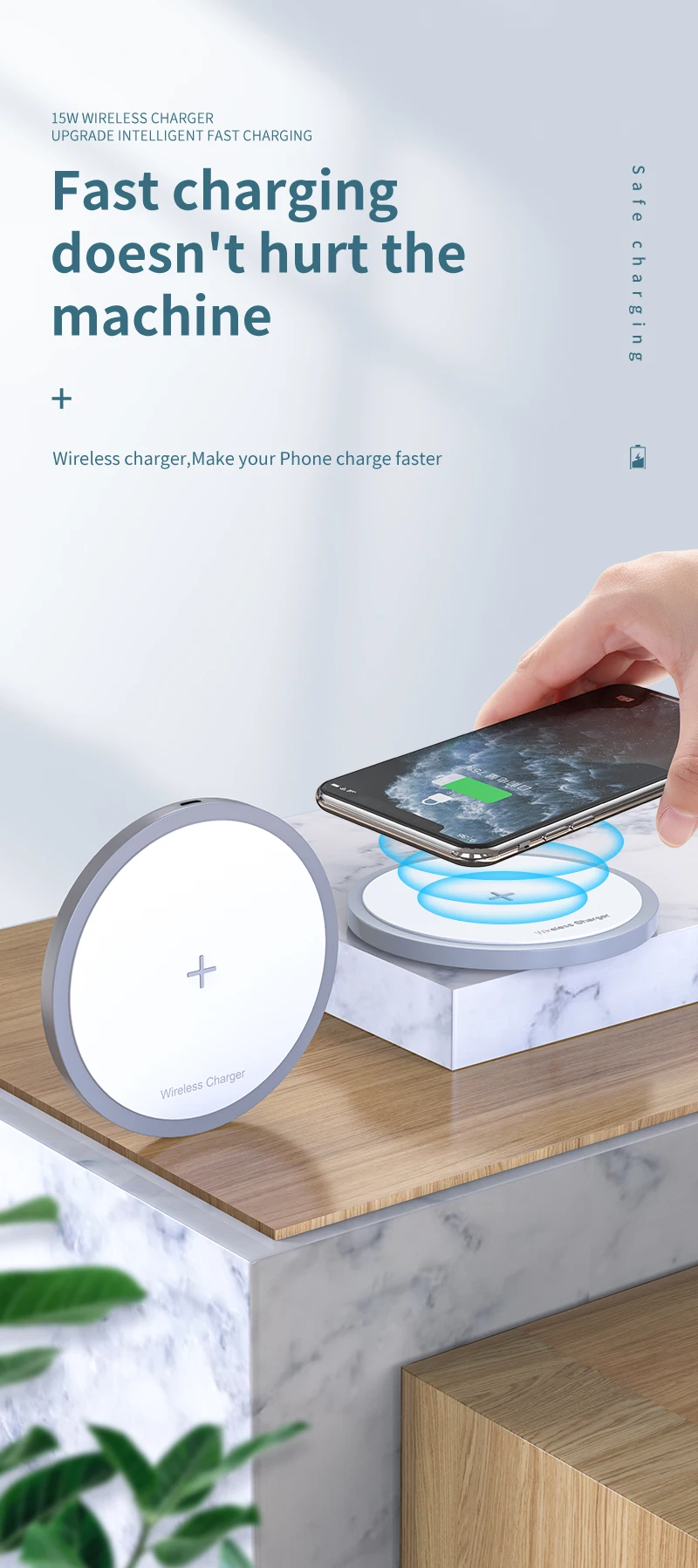 В Aikulli зарядного устройства Совместимость с iPhone 11/11 Pro/11 Pro Max/XR/XS MAX/X/8 Plus/8 до 7,5 Вт. Для телефонов Samsung Galaxy он обеспечивает высокоскоростную зарядку 10 Вт. Он также поддерживает другие мобильные телефоны с поддержкой Qi Android. Кроме того, центральный имеет резиновую прокладку, защитит ваш телефон от падения во время зарядки