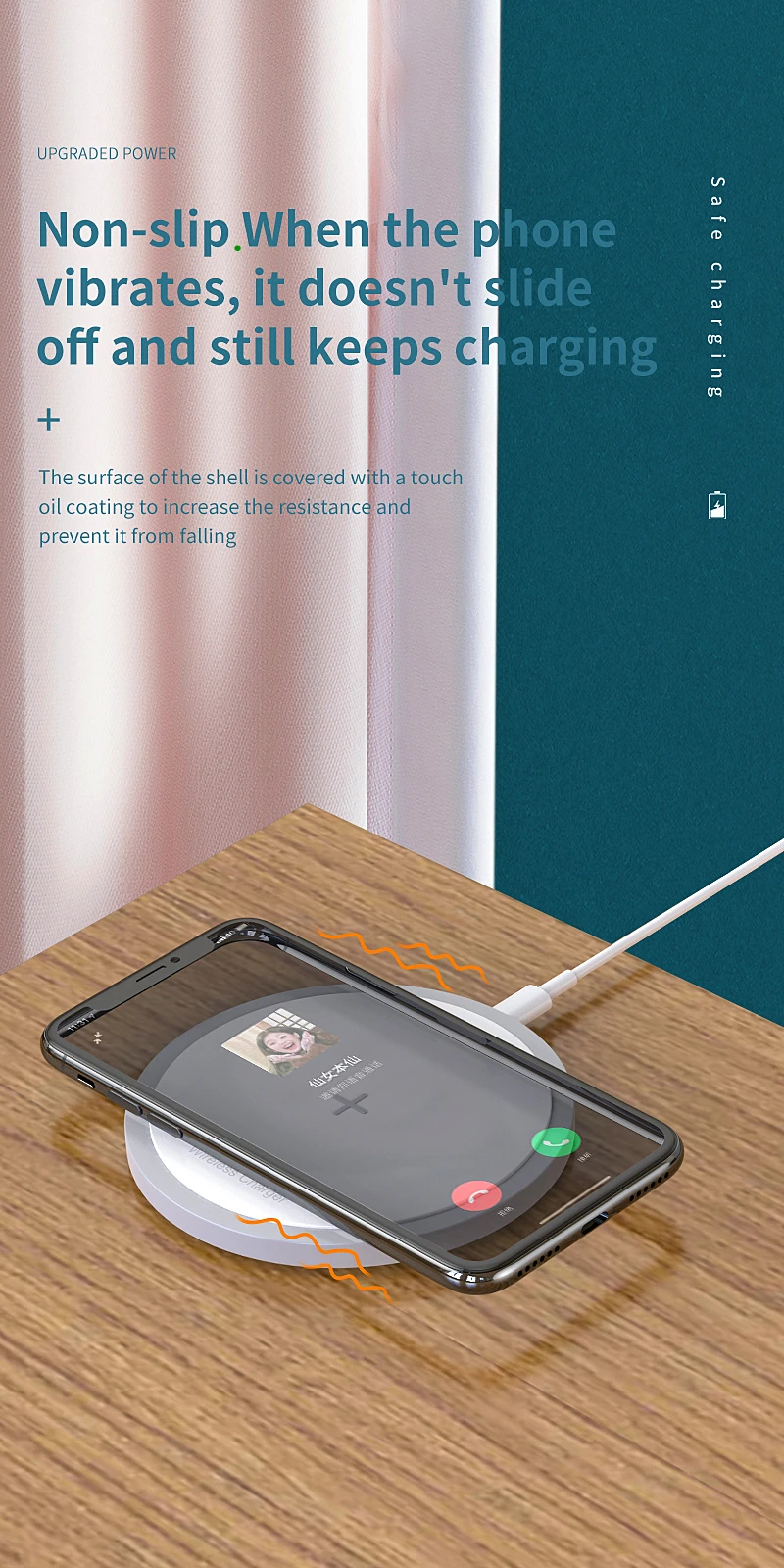 Существует зона Беспроводной зарядки, специально разработанная для AirPods Pro/AirPods 2, что позволяет легко найти место зарядки. Кроме того, нескользящий материал в этой области сохранит ваши AirPods на месте и предотвратит проскальзывание