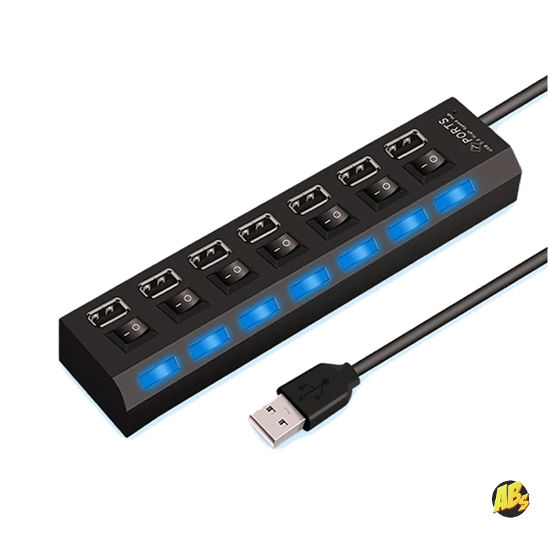 USB hub (hub) on 7 USB 2.0 ports with individual on and off Port buttons.