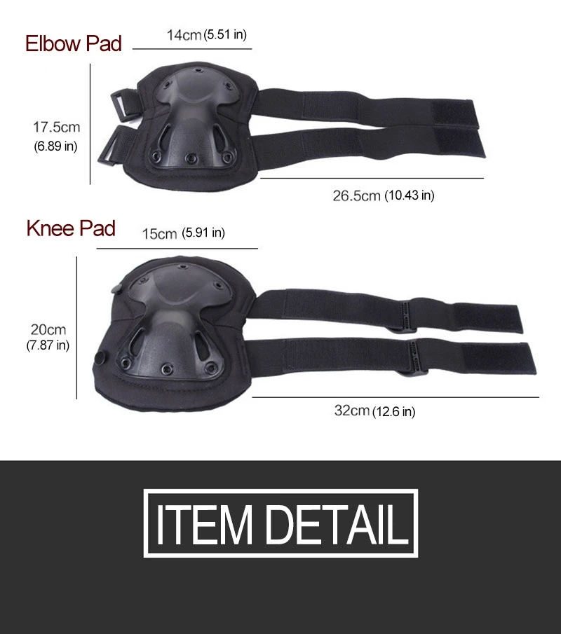 Название: спортивные наколенники и налокотники защитный комплект Тип: Тактический защитный комплект Основной материал: EVA пена, ТПУ Корпус, Cordura нейлон, Coolmax внутренний наполнитель Пол: унисекс для взрослых Цвет: CP, армейский зеленый, черный, Пустынный цифровой Размер: Наколенник: 19,5 см/7,7 дюйма (длина) x 16 см/6,3 дюйма (ширина) Налокотник: 17,5 см/6,9 дюйма (длина) x 17 см/6,7 дюйма (ширина) Вес: 366 г/12,9 унций Количество: 1 комплект