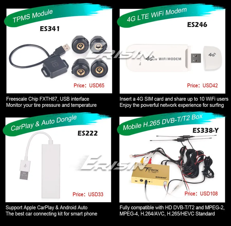 -Поддержка CarPlay, DAB +, DVB-T/T2, TPMS, OBD2, DVR, Camera, AVIN, 3G, 4G и т. д. расширенные функции.