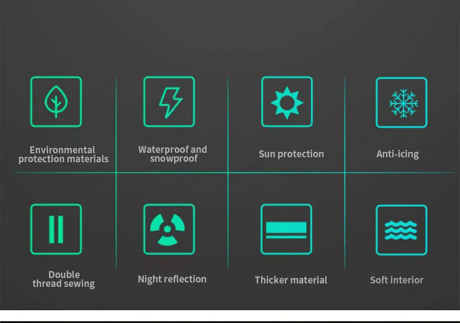 Функции: водонепроницаемый, солнцезащитный, снегозащитный, ветрозащитный, пыленепроницаемый