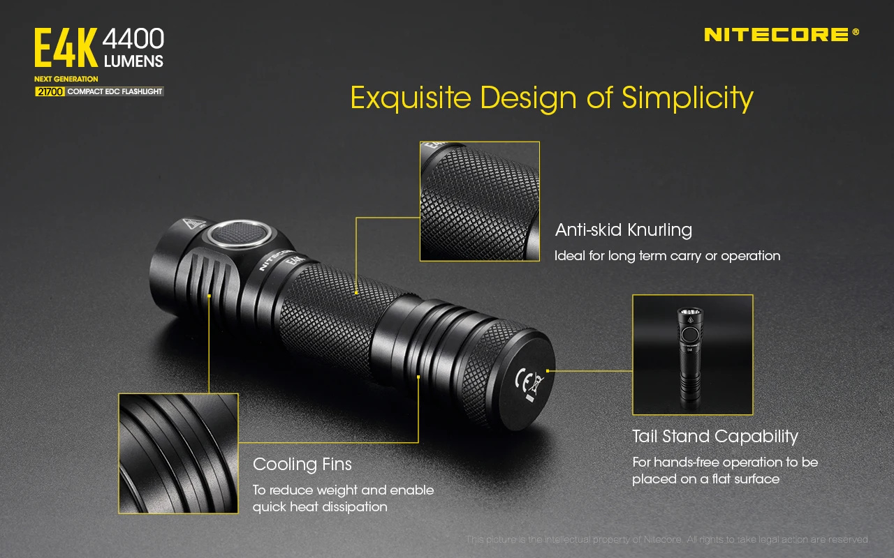 Посылка: фонарь Nitecore E4K * 1, литий-ионный аккумулятор Nitecore 21700 (NL2150HPR 5000 мАч) * 1, кабель для зарядки USB-C * 1, магазин аккумуляторов CR123A * 1, двусторонний карманный зажим * 1, кобура * 1, ремешок * 1, запасное уплотнительное кольцо * 1