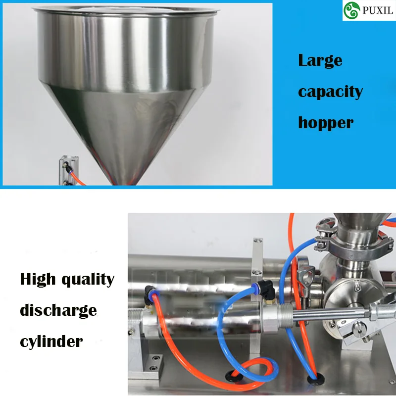Specification Specification Equipment name: G1WG bedroom pneumatic paste filling machine Air pressure: 0.4-0.9Mpa Device model: G1WG Filling speed: 1-25 bottles/min Power supply voltage: 220V 50HZ Air consumption: 0.1m3/min Features: 1 This machine is driven by compressed air control, so it is especially suitable for use in an explosion-proof and humid environment, and has a high degree of safety. 2. Due to the use of pneumatic control and mechanical positioning, the filling accuracy is high, and the accuracy can be controlled by 1% 3. The use of lead screw and counter makes the filling volume adjustment precise and can be directly reflected in digital form 4. In the case of emergency stop again, just press the emergency stop switch, the piston will automatically return to the initial position, and the filling will stop 6. Very low equipment failure rate