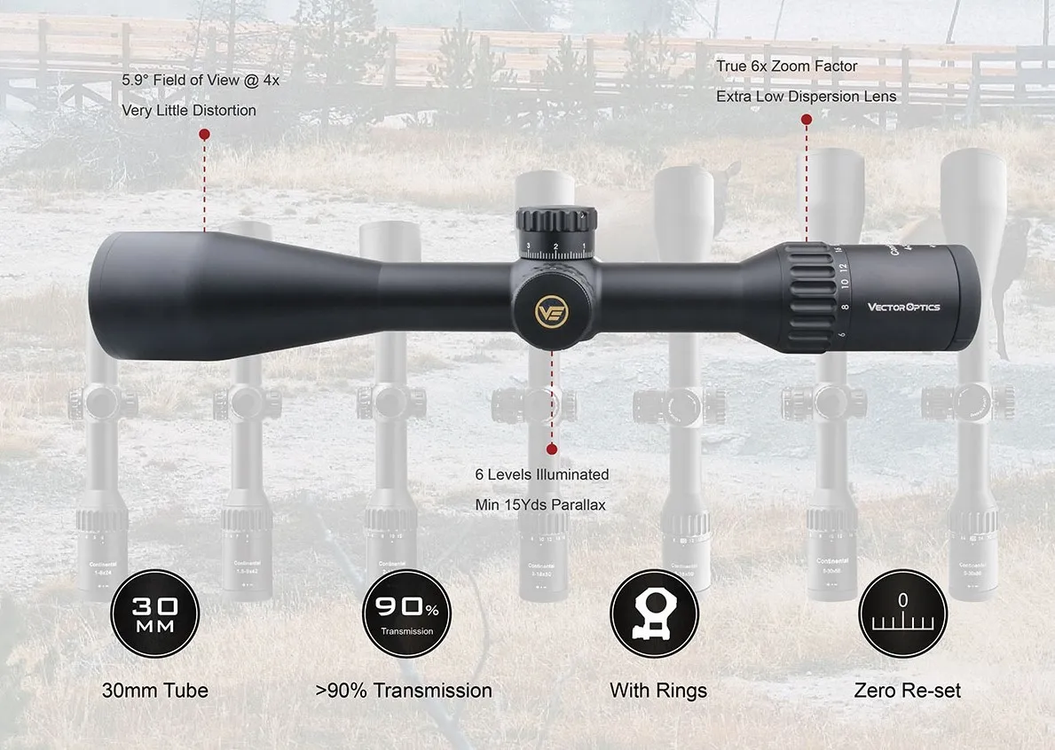 · 30 мм монотруба из 6061 T6, боковая фокусировка мин начинается от 15 ярдов до бесконечного