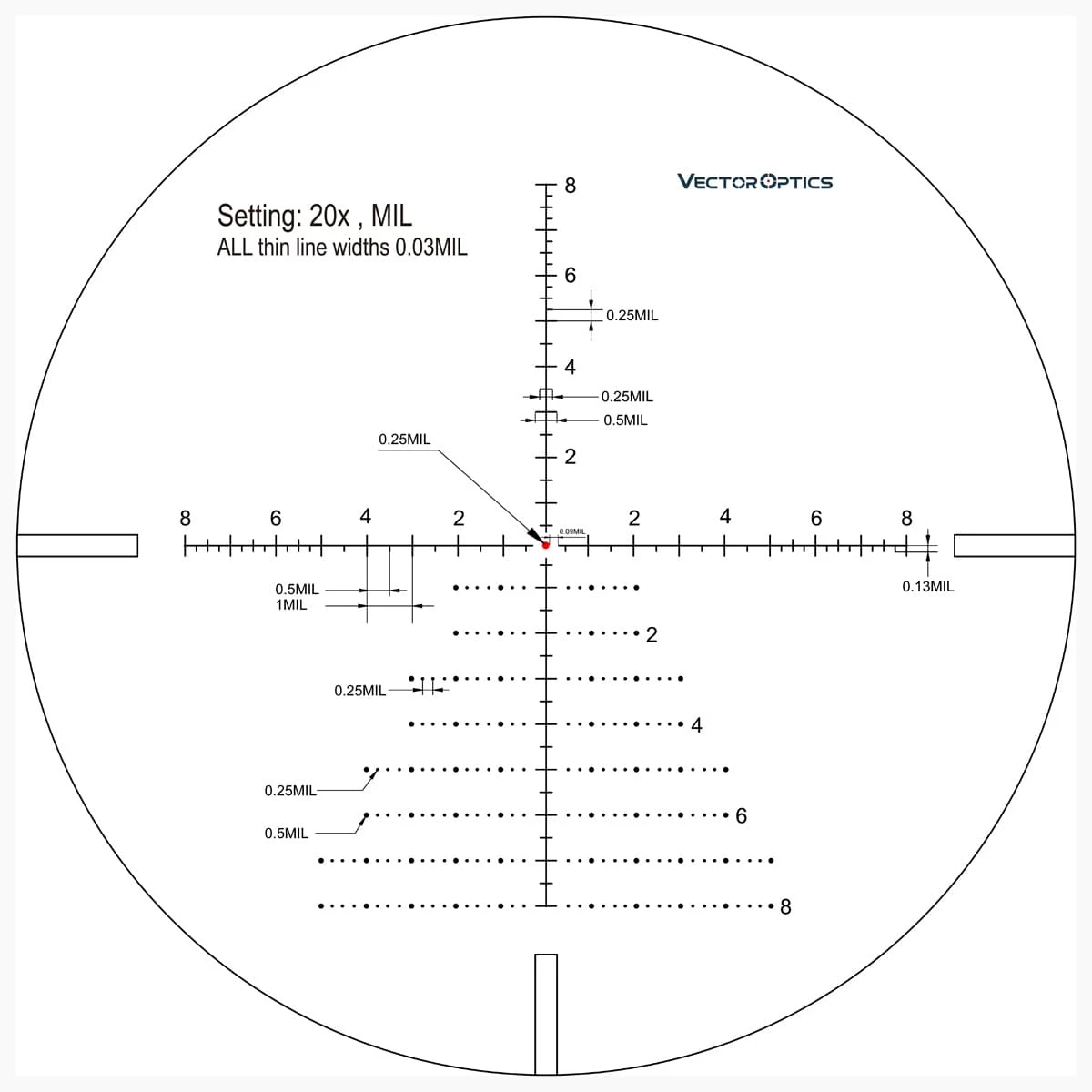 ·Etched VPA Glass Reticle, 1/10MIL, 1cm, 0.1MRAD Adjust, Center Dot Illumination, Light transmission reaches to 90%
