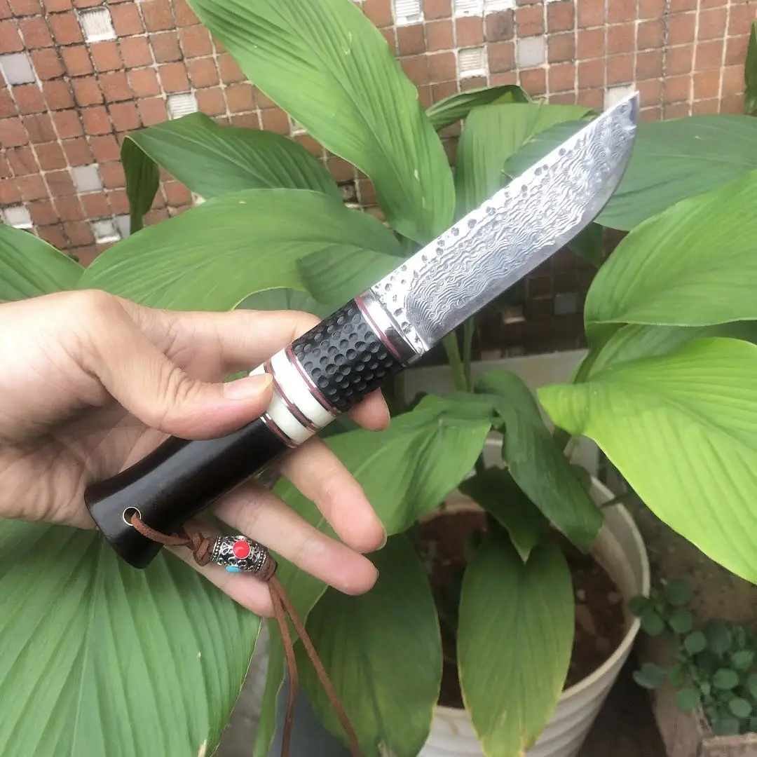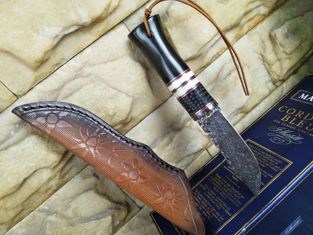 Ручной работы настоящий Дамасская сталь охотничий нож 58 HRC Дамасская сталь кемпинг фиксированный нож эбеновая ручка с кожаный инструмент в ножнах