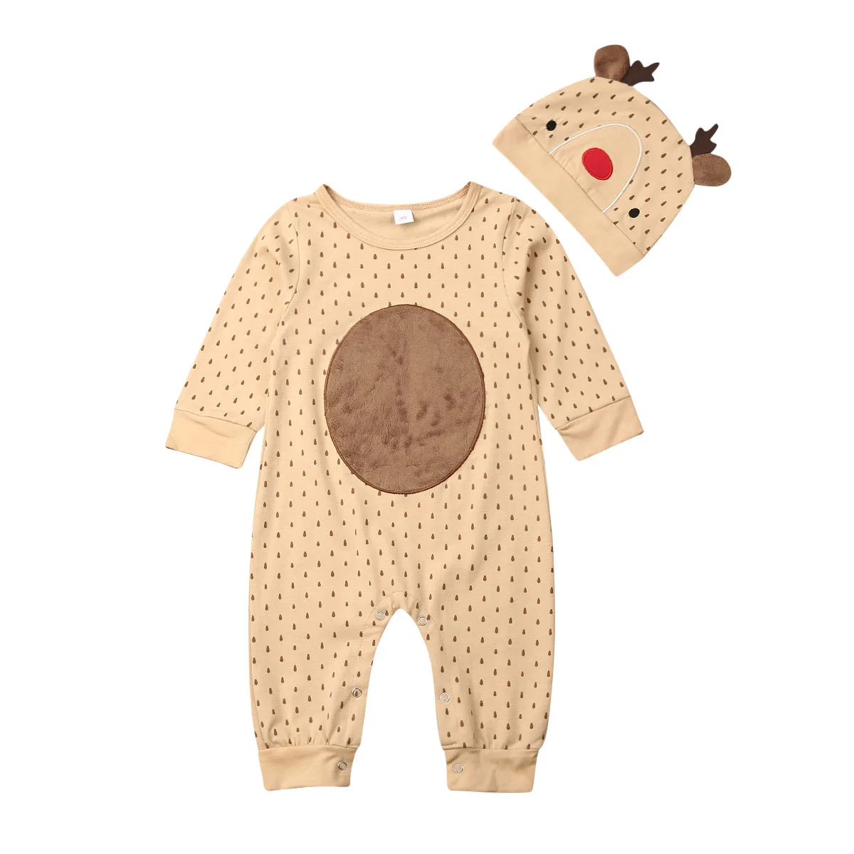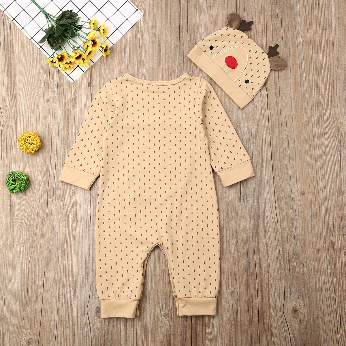 С изображением рождественского лося Детский комбинезон с вышивкой для малышей, одежда для маленьких мальчиков и девочек с длинным рукавом облегающий костюм комбинезоны на Рождество комплект из двух предметов одежды на возраст от 0 до 18 месяцев