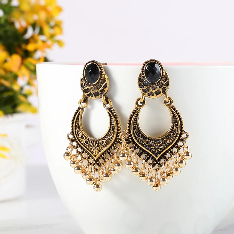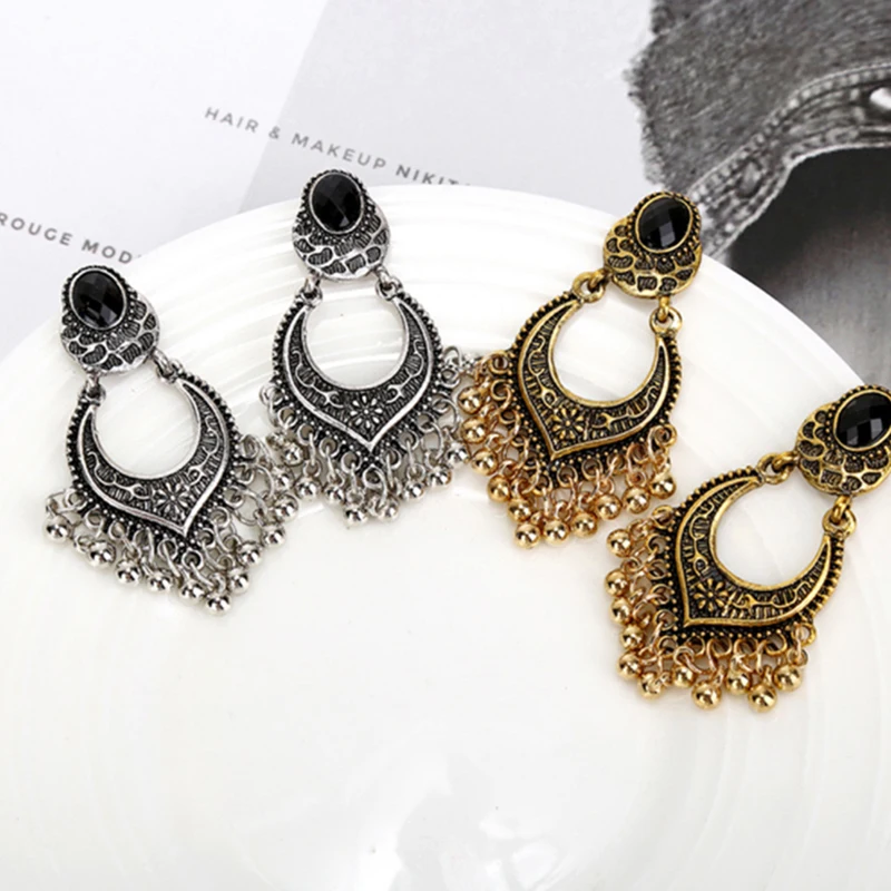 Модные серьги золотистого цвета с металлической кисточкой, большие длинные серьги для женщин, этнические индийские ювелирные изделия