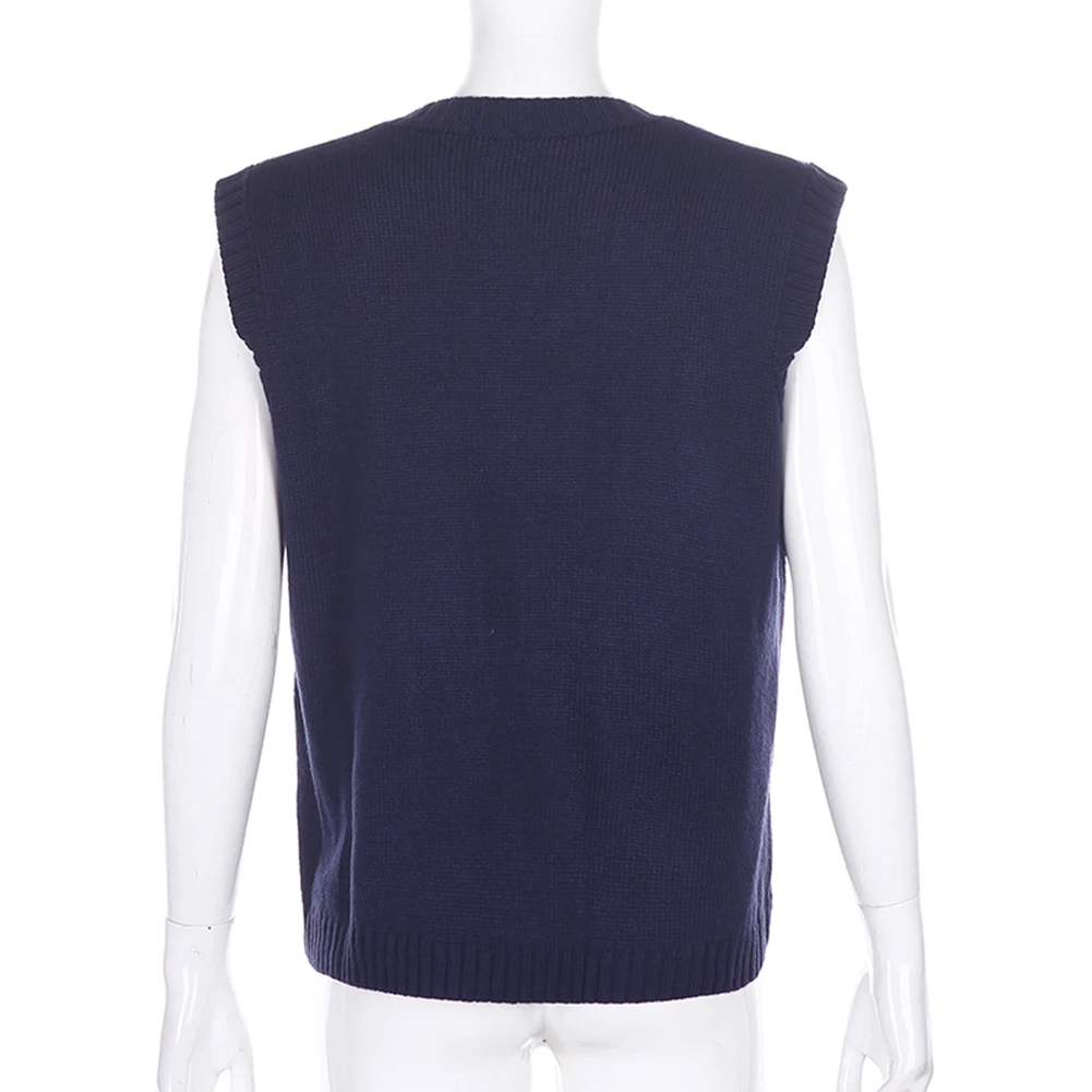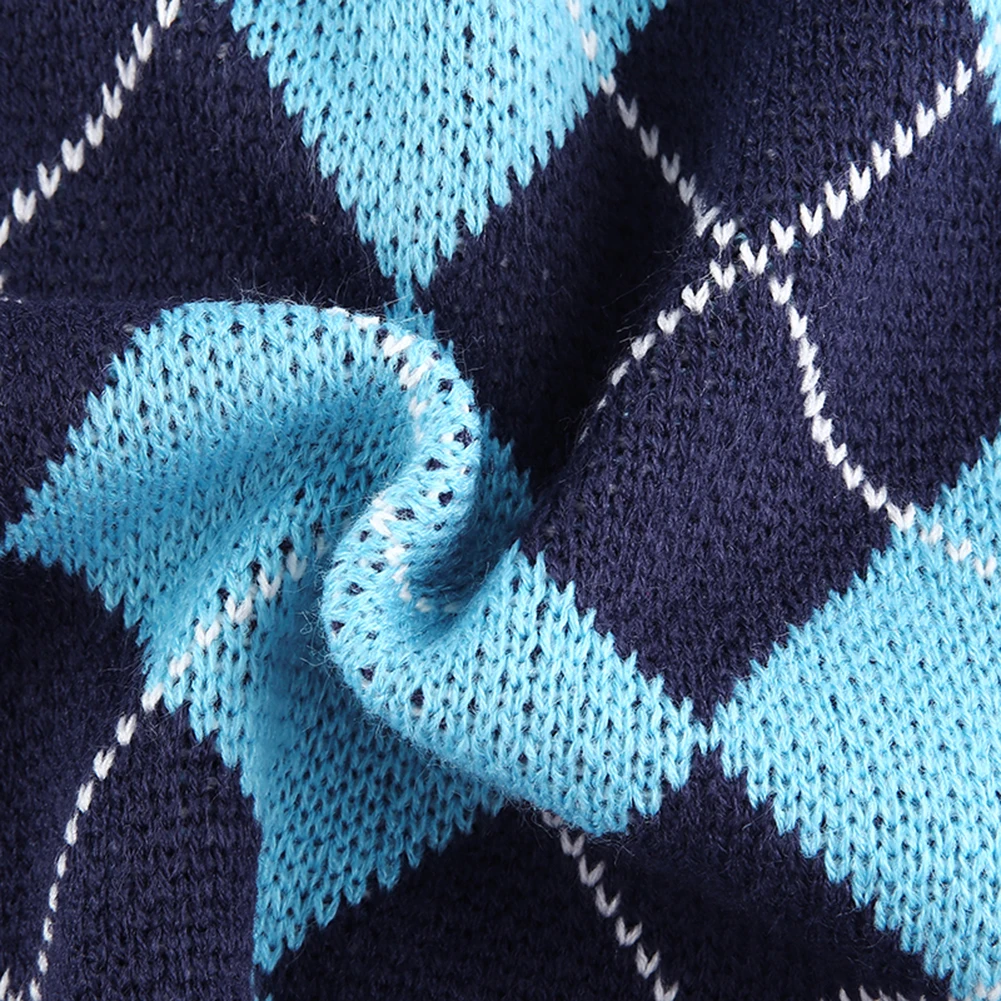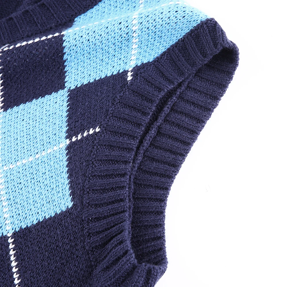 Женский укороченный свитер в стиле преппи Y2k, Осенний джемпер с узором ромбиками, пуловер без рукавов, вязаный винтажный жилет в школьном стиле, 2020