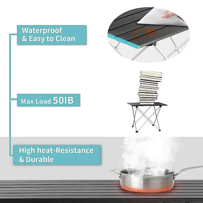 3. Столешница устойчива к высоким температурам и легко моется, подходит для одного человека или с друзьями для пикника, рыбалки и барбекю.