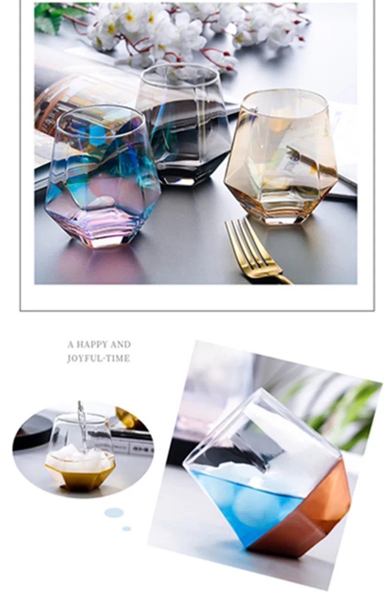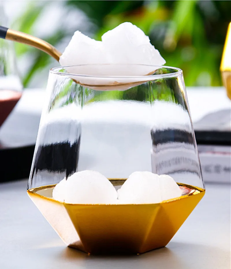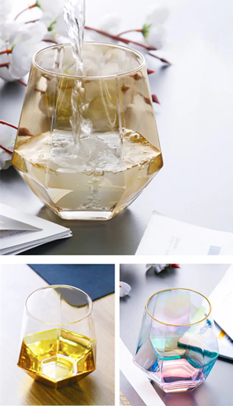 1 шт., пара стеклянных чашек es, Геометрическая кружка для виски с кристаллами и кристаллами, чашка для воды, прозрачная кофейная кружка для молока, чайная кружка, домашний бар, посуда для напитков