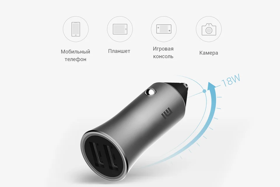 When using two outputs, the car charger Mi car charger pro intelligently distributes power between two connected devices, and the total power can reach up to 15 W. This will be enough for both the driver and the passenger.