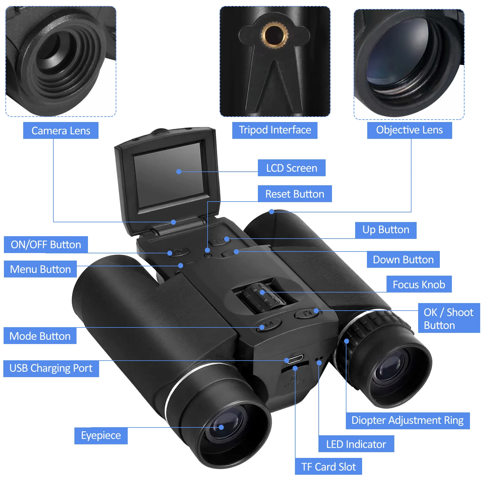 Бинокль с ЖК-экраном 1,5 дюйма для кемпинга, пеших прогулок, путешествий, наблюдения за птицами, концертов, спортивных мероприятий и других уличных приключений.