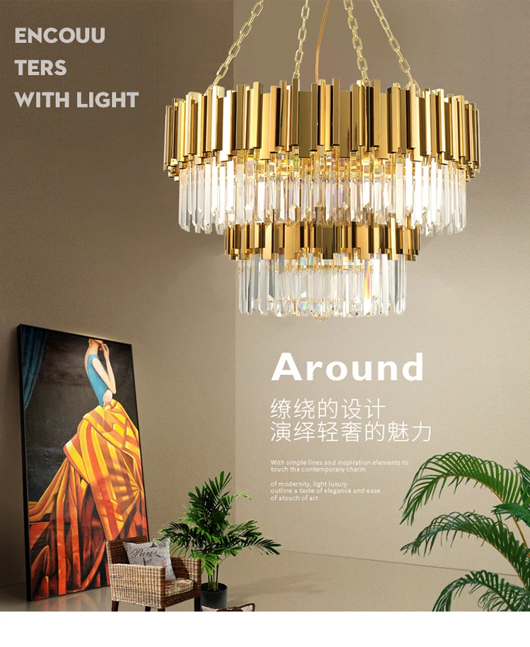 1. Напряжение: 90-260 В переменного тока 2. Цвет: Золотой 3. Цвет светильник: белый/теплый/светильник 4. Материал: железо, кристалл K9 5. Источник: светодиодный светильник E14 6. Включает ли лампа: Да 7. Упаковка: стандартная упаковка для экспорта: пена + картон + деревянная коробка (при необходимости).