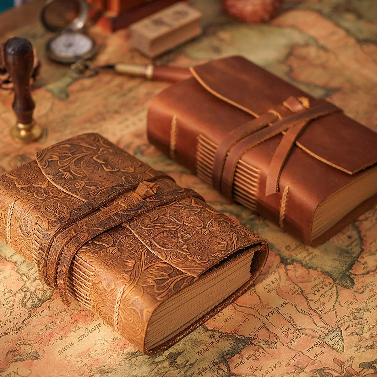 Толстый блокнот из натуральной коровьей кожи 400P пустая бумажный альбом ручная работа ленточный блокнот с веревкой ручной работы для подарка