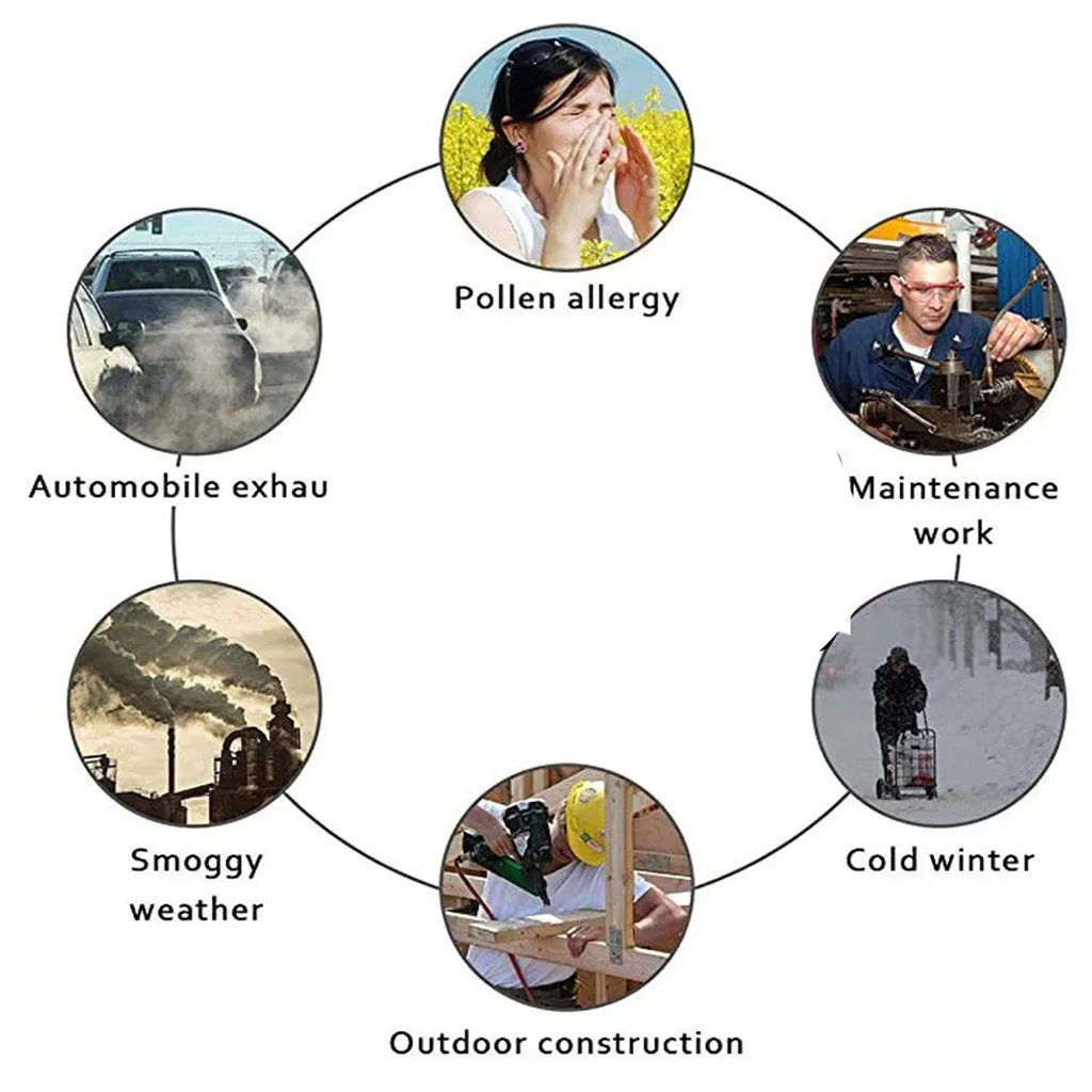 Этот респиратор можно использовать для защиты от вредных частиц, выхлопных газов автомобиля, деревообработки, аллергии на пыльцу и испарений. Идеально подходит для людей с риском респираторных заболеваний, проживания или путешествия в зоны с высоким уровнем загрязнения воздуха/дыма.
