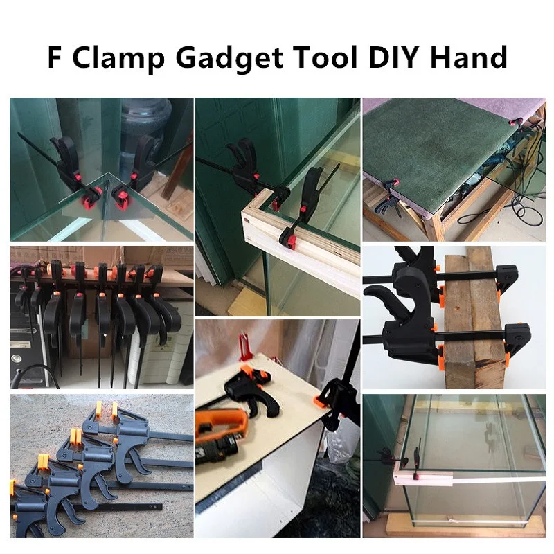 Параметры 1. Изделие: F зажим для обработки дерева 2. Материал: пластик 3. Размер: 4 дюйма 4. Цвет: черный и оранжевый Посылка входит 1 * F зажим для обработки дерева Использование наконечника 1. Нажмите кнопку быстрого спуска, чтобы освободить челюсть, затем сожмите курок для нанесения нажатия ure. 2. После установки челюсть заблокирована и не будет смещаться. 3. По окончании работы просто нажмите кнопку быстрого выпуска, чтобы отпустить заготовку.