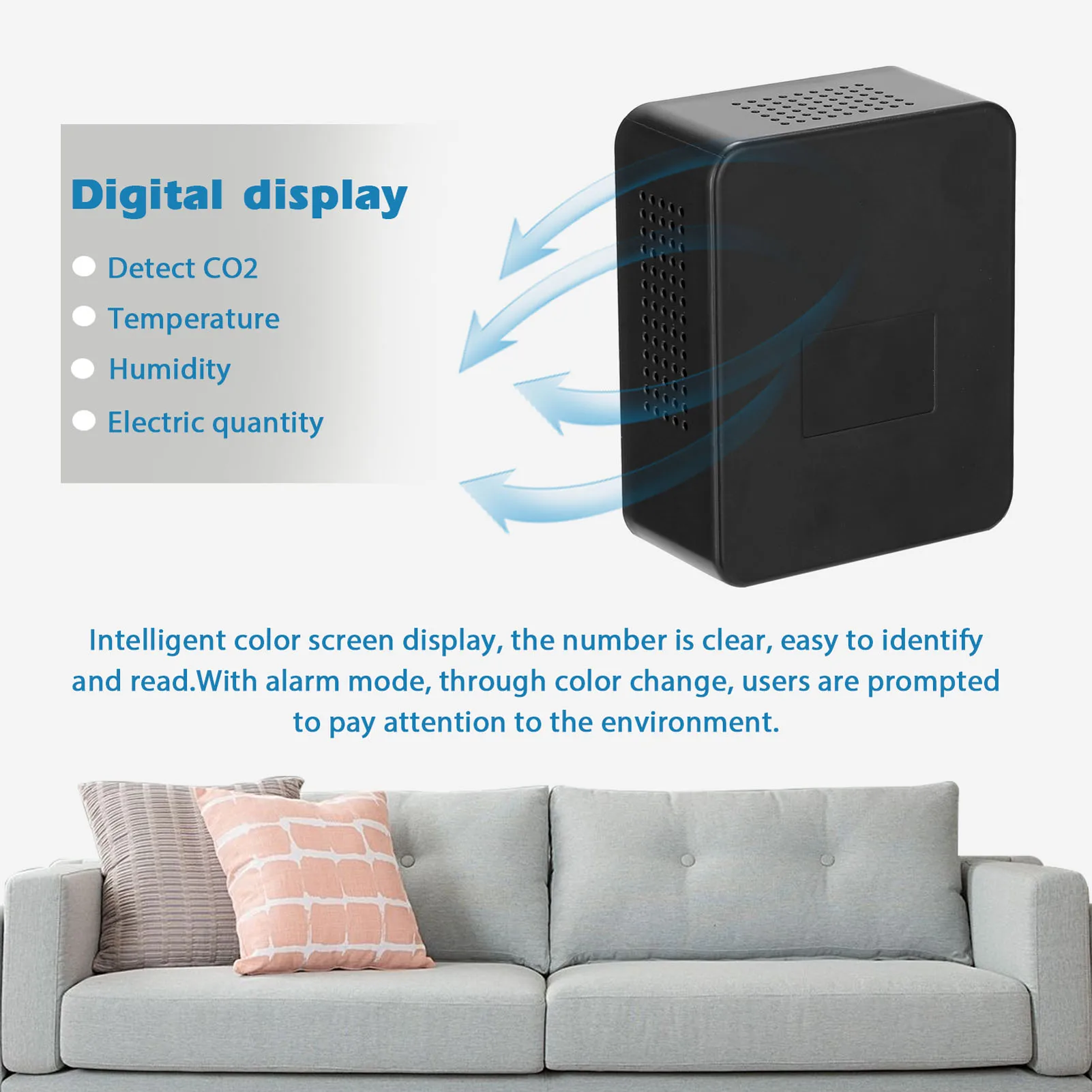 Этот детектор небольшой и портативный, может четко отображать концентрацию HCHO и CO2, температуру и влажность окружающей среды, подходит для офиса, дома, тренажерного зала и других сценариев использования.