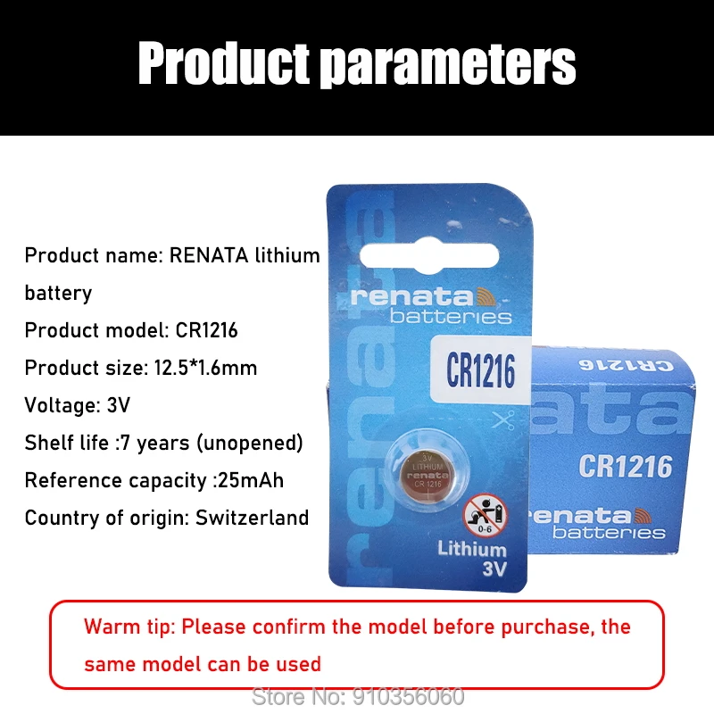 Модель: CR1216 Емкость: 25 мАч Размер: 12,5 мм * 1,6 мм Напряжение: 3 в Рабочая температура: 5 ℃ ~ 45 ℃ Материал: литий-ионный