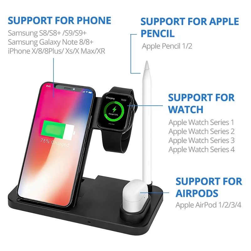 SAMTIAN 4 в 1 Беспроводное зарядное устройство для быстрой зарядки док-станция для быстрой зарядки QI зарядное устройство для телефона электронная ручка Смарт-часы
