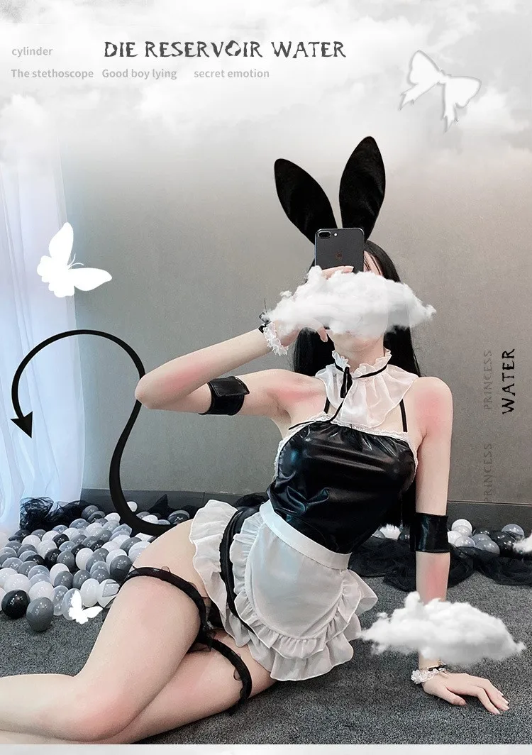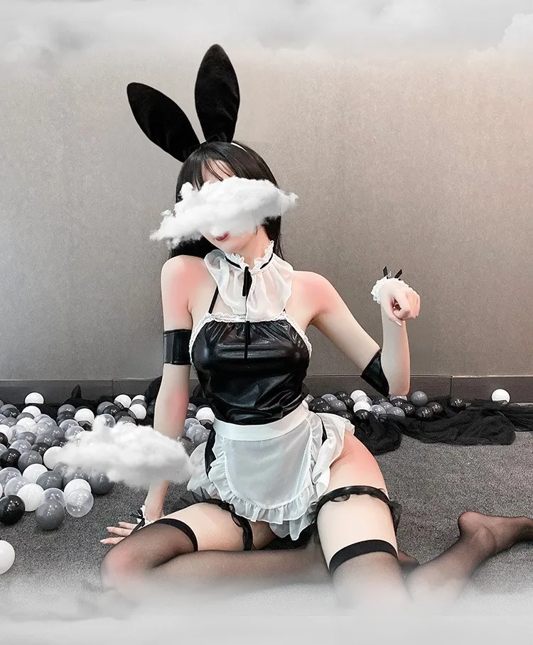 Package Includes: hair Band + Choker + Dress + T Pants + Apron + Armband X 2 + Bracelet X 2 (Stockings in Addition optional)