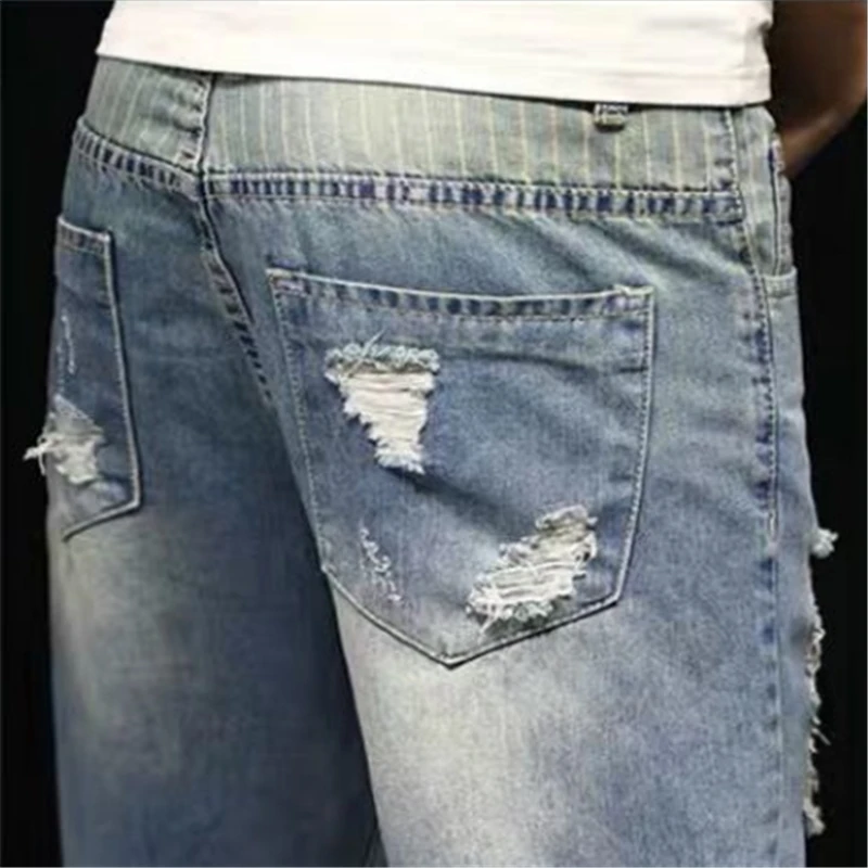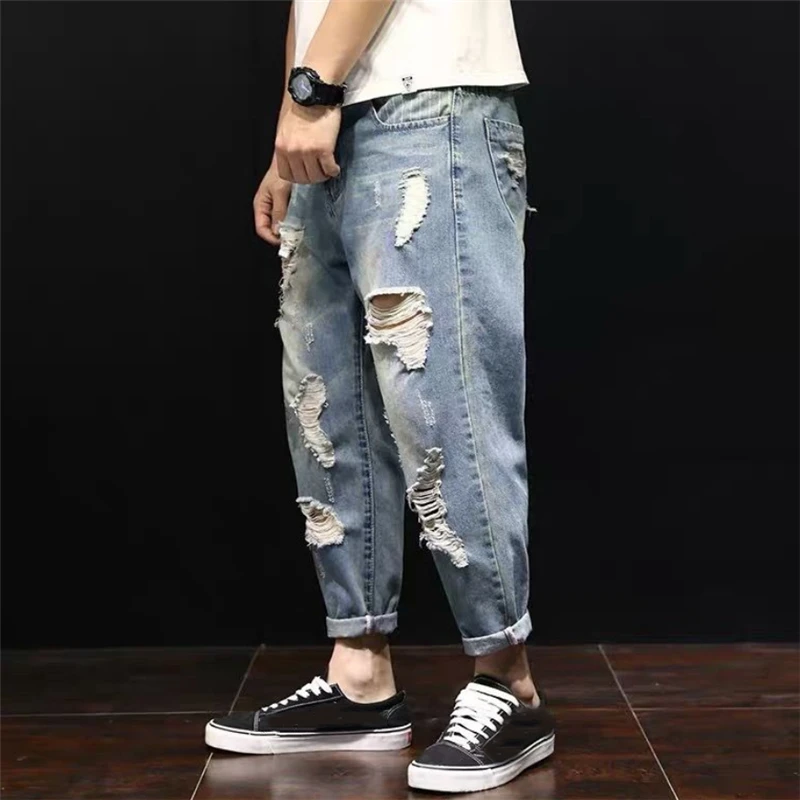 Наименование товара: мужские рваные джинсы Стиль: Модный, трендовый, Повседневный, уличный стиль Популярные элементы: рваные, с отверстиями Повод: Повседневная жизнь, отдых на открытом воздухе, вечерние, рабочие, путешествия, свидания и т. Д. Год выпуска: зима 2020 Цвет: синий (как на картинке) Мужские рваные джинсы: повседневные мужские джинсы Мужские джинсы: мужские рваные джинсы Мужские синие джинсы: мешковатые джинсы для мужчин Мужские джинсы-шаровары: мужские джинсы со средней талией