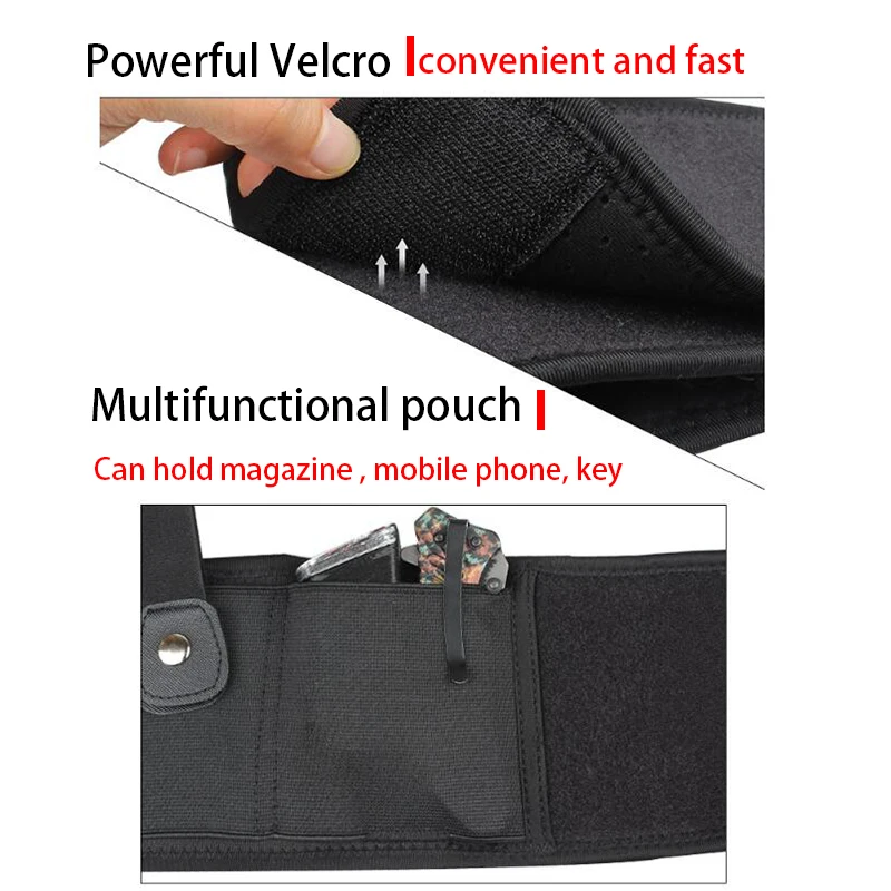 Tactical Universal Concealed Carry Pistol Holster Gun Pouch Belly Band Holster Waist Bag Invisible Elastic Girdle Belt Right/Left Hand