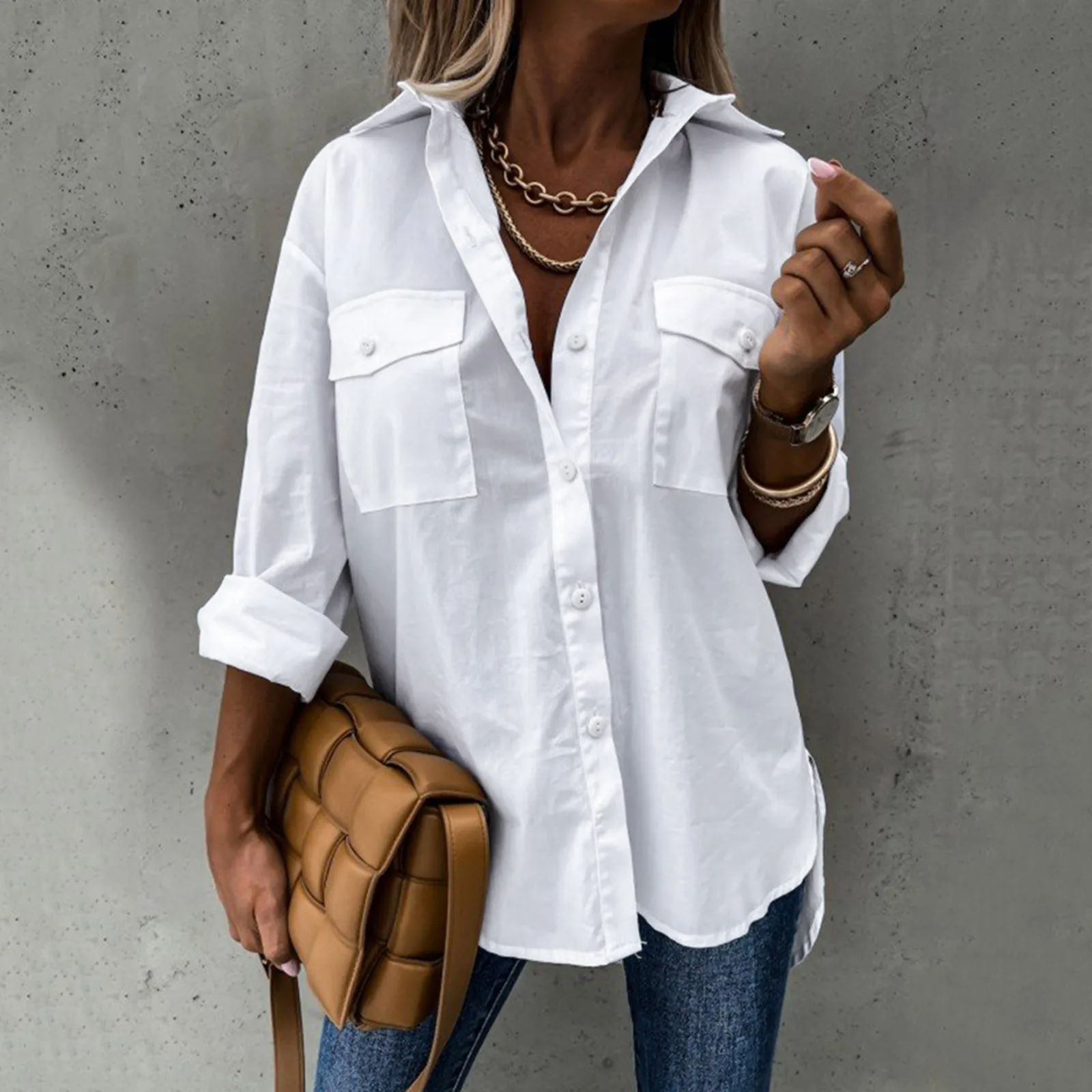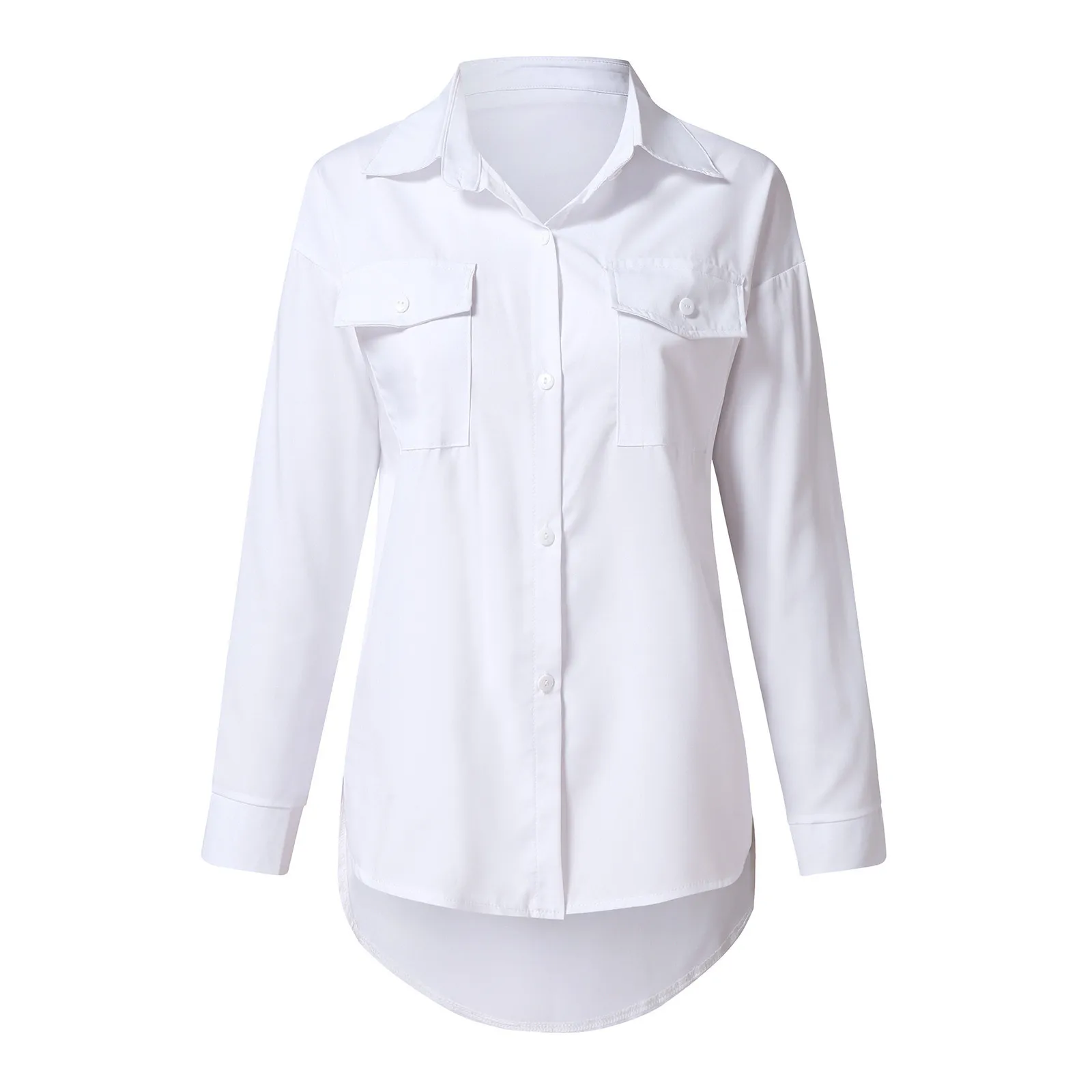 Женская Повседневная однотонная Асимметричная Свободная рубашка с длинным рукавом и отложным воротником