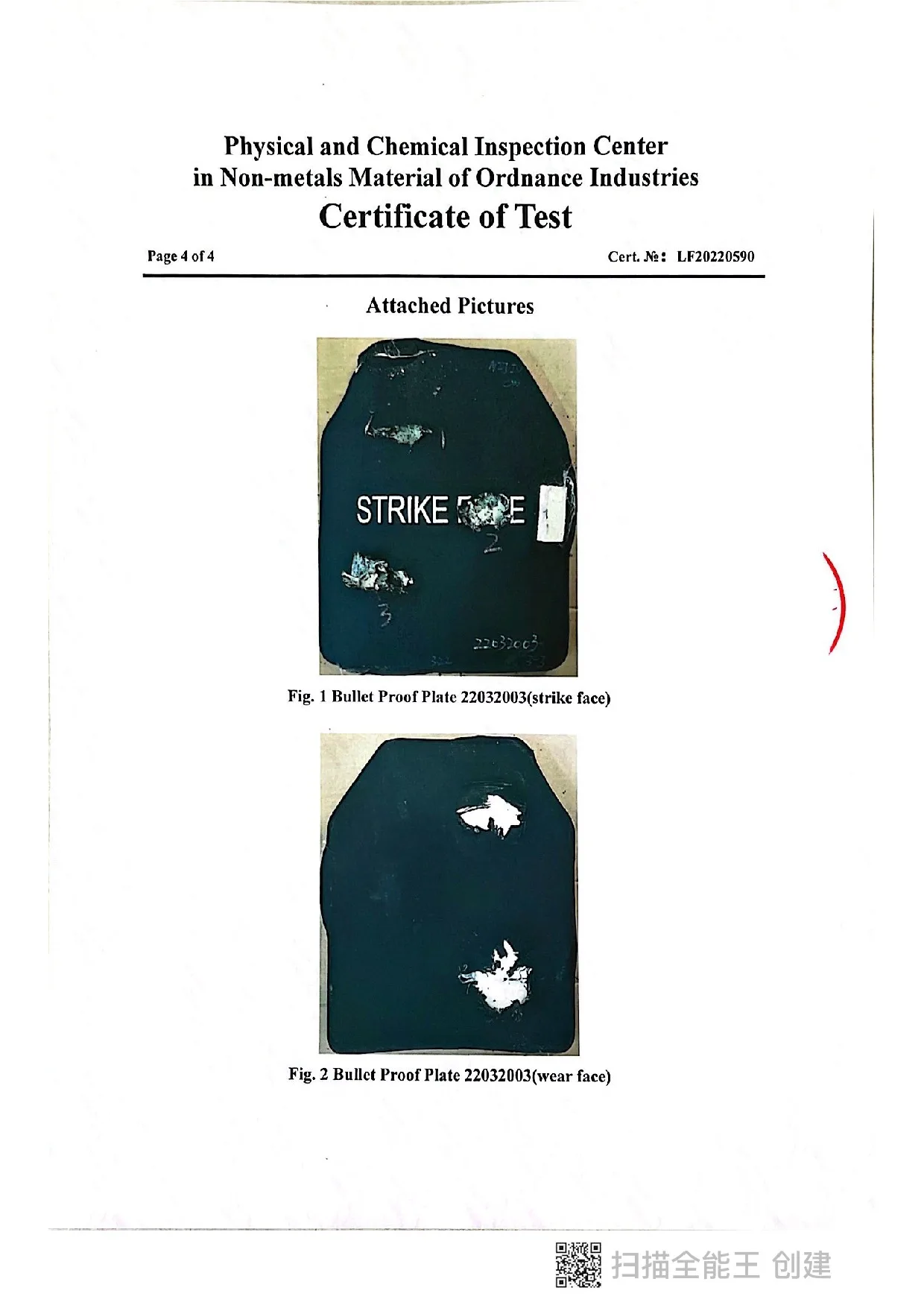 Сертификат:Сторонняя лаборатория баллистических испытаний и iso9001: система управления продуктом 2015.