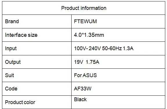 Шаг 1. Проверьте входные данные на вашем ноутбуке или на выходе адаптера. Вы найдете данные о напряжении и токе. Такие как 20V 3.25A, 19V 3.42A, 19V 2.37A .... Шаг 2. Проверьте размер подключения. Диаметр * диаметр lnner Такие как 5,5*2,5 мм, 4,0*1,7 мм, 4,0*1,35 мм .... Если вы все еще не понимаете, пожалуйста, обратитесь к нам за помощью!