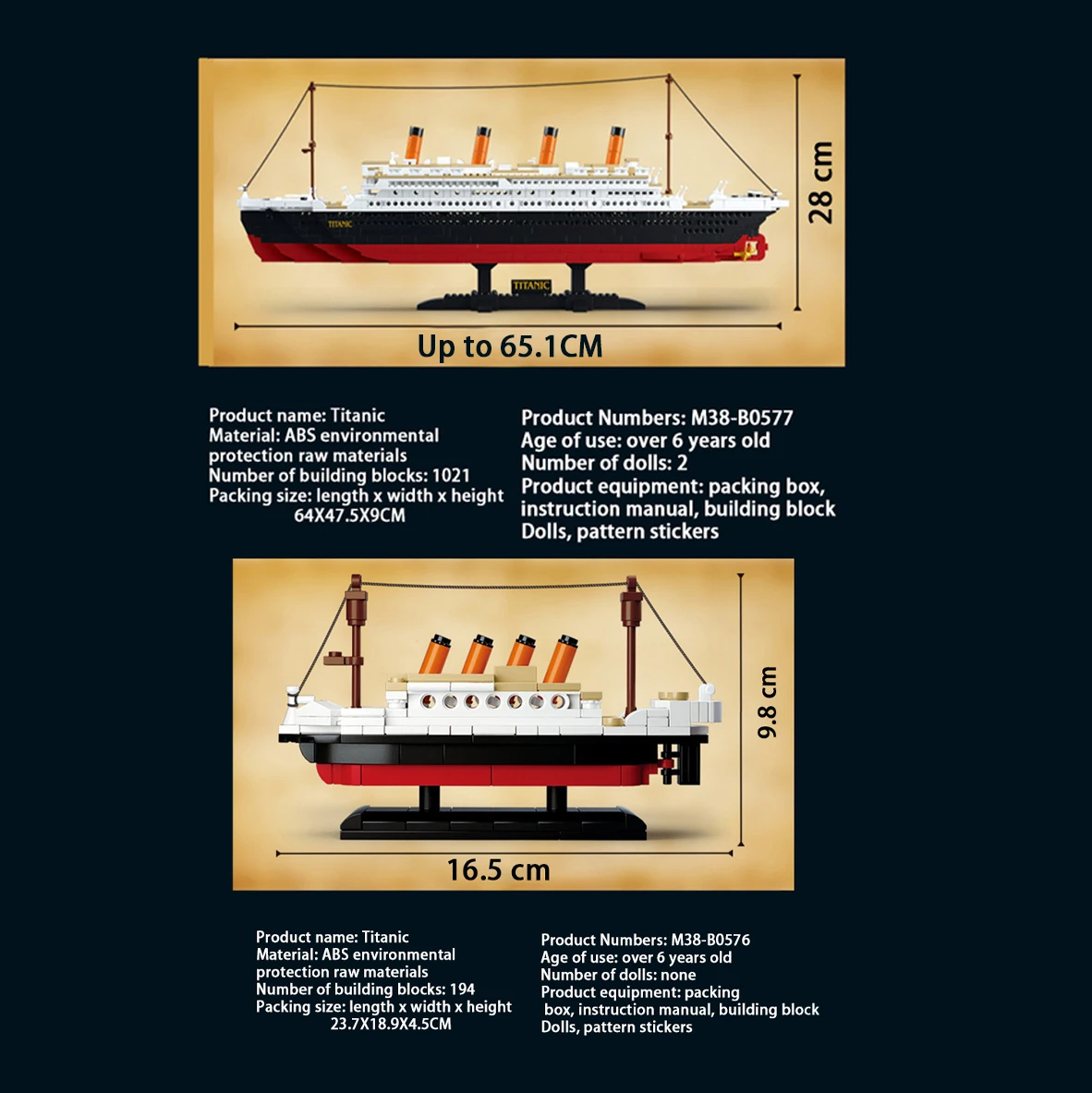 194/1021 шт DIY строительные блоки создатель города Модель Титаник круиз 3D блоки Развивающие кирпичи Фигурки игрушки для детей Рождественский подарок Название продукта: Титаник 194/1021 шт DIY строительные блоки Материал: АБС-пластик Защитное сырье Количество строительных блоков: 194/1021 шт. Размер упаковки: 194 шт --- 16,5х9, 5 см 1021 шт --- 65.1x28см Возраст использования: старше 6 лет