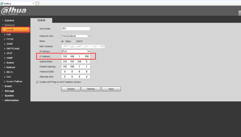 Answer: 192.168.1.108. User name is ‘admin' and Password no set. You can set it once you're logged in.
