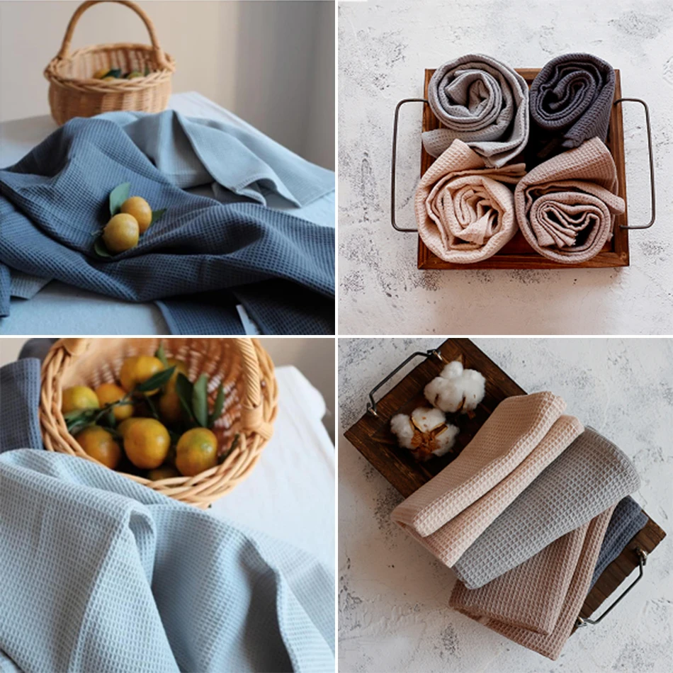 Несколько вариантов: хлопковые чайные полотенца поставляются в 6 однотонных цветах. Большая часть кухонной посуды с вафельным принтом более практична и доступна, когда вы готовите или моете блюда, и может также работать в качестве центрального элемента вашего обеденного стола