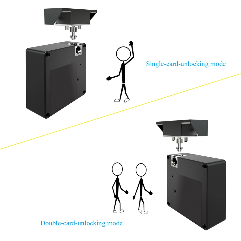7. Режим разблокировки с одной картой и режим разблокировки с двумя картами (см. Руководство пользователя скрытого замка шкафа с EM-картой. Он содержит способ настройки)
