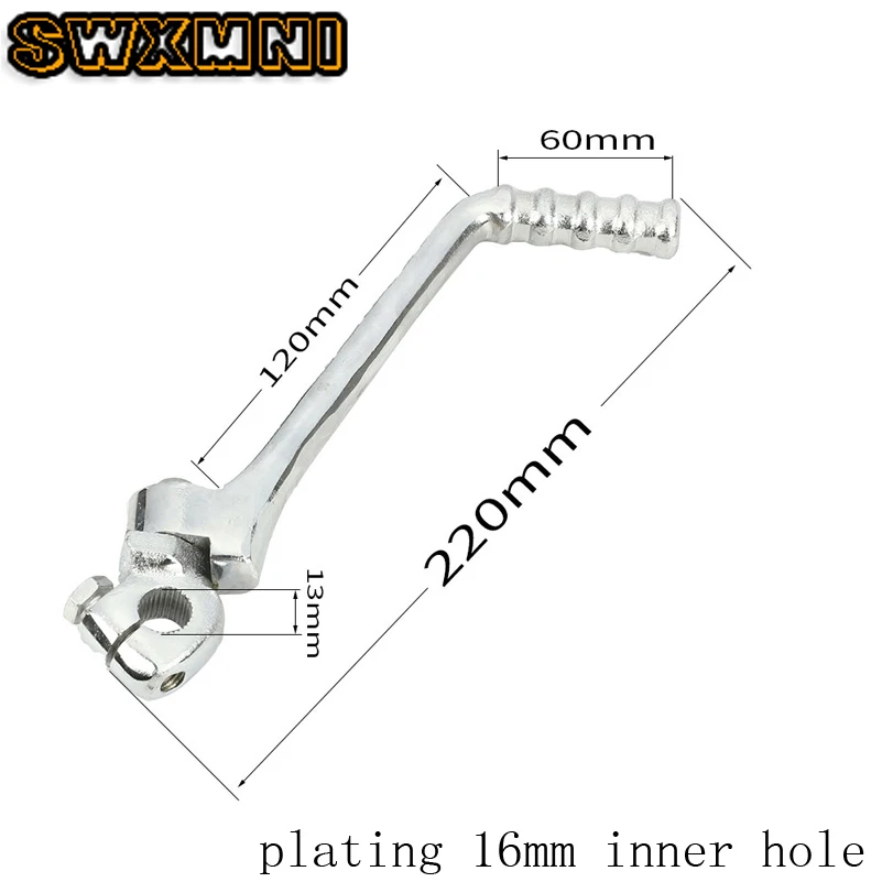 Характеристики: -- Производство: Китай -100% новый, никогда не монтируется, -- Высокое качество -- Материал: сталь -- Легко устанавливается. -- Размеры: 16 мм или 13 мм -Цвет: как показано на картинке -Вы получите точно такие же, как на фотографиях. -- Посылка включает в себя: 1x рычаг запуска Инструкция по установке не включена. Приспособление для: Универсальный для 50 70 90 110 125 140 150 160 190cc горизонтальные двигатели китайского производства велосипед ямы Dirt Bike, Универсальный для KAYO BSE SSR SDG ORION BSE Xmotos Apollo Pitsterpro Thumpstar Dirt Pit bike Большинство китайских мотоциклов. Велосипед-яма Это универсальное применение и продается по размеру, а не по модели.