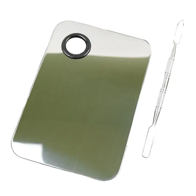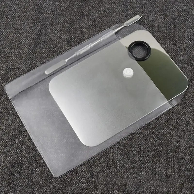 Палитра с черным пластиковым кольцевым отверстием для защиты вашей руки. Легко наносится и помещается в сумку для макияжа или сумку для рук.