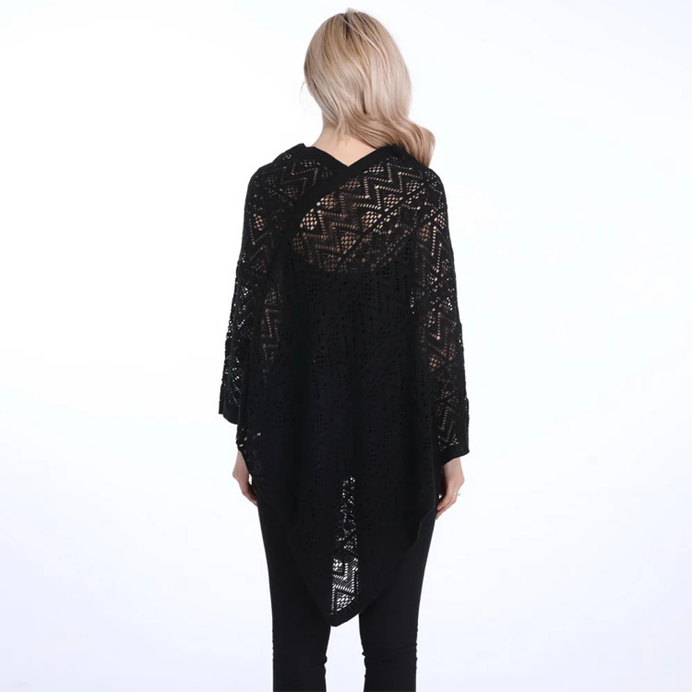 Ключ В Узоре. Этот трикотажный дизайн создает длительную иллюзию верхней части тела, уменьшая ширину тела. Кроме того, многослойная майка с этим пончо хорошо работает, если вы хотите показать немного кожи, не забивая все это. И подходит для любого размера 36,6x36,6 дюймов.