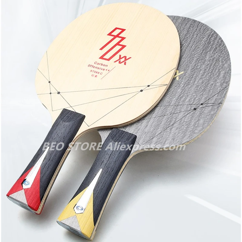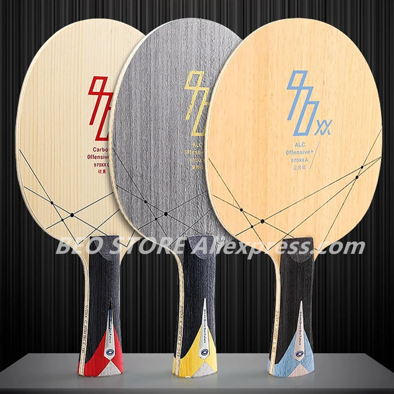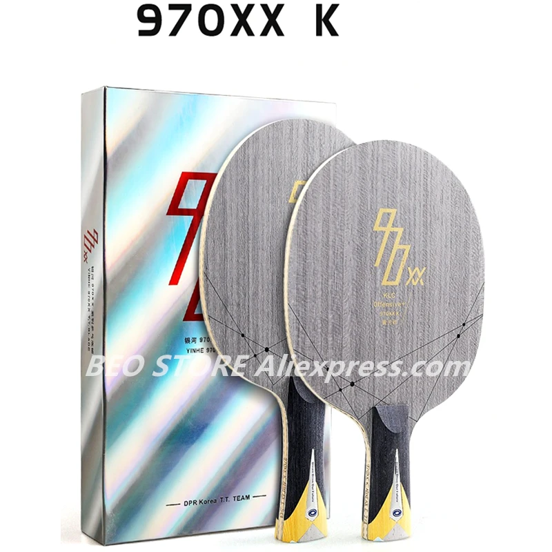YINHE professional 970xx серия лезвие для настольного тенниса C.T.T.A. 970xx K: 5ply дерева + 2 слоя KLC Скорость: 10 Управление: 8 Вращение: 8 970xx A: 5 слоев дерева + 2ply ALC Скорость: 9 Контроль: 10 Вращение: 9 970xx C: 5ply дерева + 2 слоя углеродный руль Скорость: 10 Контроль: 9 Вращение: 9