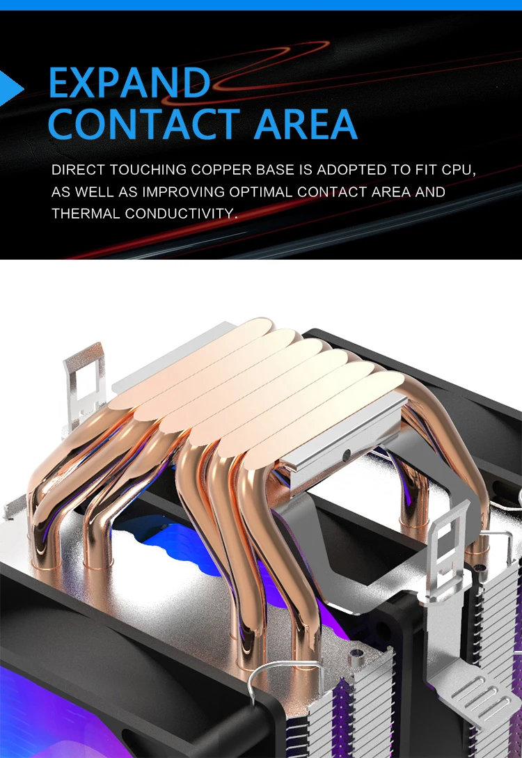 Комплектация: 1 вентилятор для кулера процессора 1 кронштейн для кулера (поддерживает розетки 775/115X/1366/1200/AMD AM2/AM2 +/AM3/AM3 +/AM4/FM1/FM2) 1х термопаста (1 г) характеристики: Материал теплоотвода: медь и алюминий Цвет: без света ver. Цветная (RGB) VER. Размер продукта (Д x Ш x В): около 142x97x132 мм Размер вентилятора (Д x Ш x В): около 90x90x25 мм Количество вентиляторов: 3 подшипник: гидравлический подшипник шум: 23.4dBA скорость: 1800PRM ± 10% разъем: для Intel 775/1156/1155/1151/1150/1366/1200 для AMD AM2/AM2 +/AM3/AM3 +/AM4/FM1/FM2 особенность: оснащен универсальным кронштейном. Поддержка сокета LGA 115X 1366. Доступен в различных дизайнах и спецификациях для вашего выбора, крутой личности. Плавники с алюминиевым шифрованием, плотно расположены, отлично рассеивают тепло, прочные и не деформируются. Лезвие из АБС-пластика, гидравлический подшипник, длинный и прочный, большой объем воздуха, бесшумное и эффективное охлаждение.