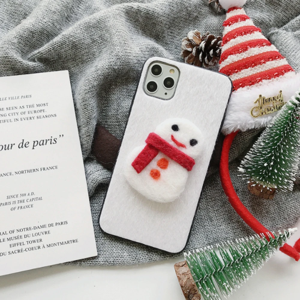 Рождественский войлочный чехол для телефона iPhone 7 8 6 6S Plus 11 12 Mini Pro XS Max XR X SE 2020 силиконовый чехол с изображением Санта Клауса лося снеговика