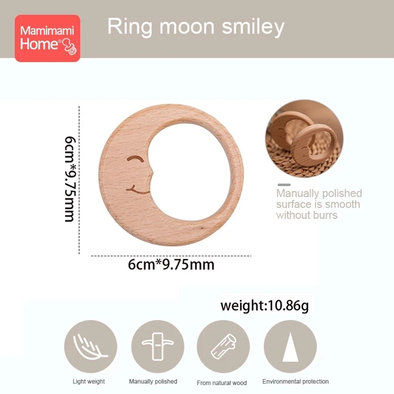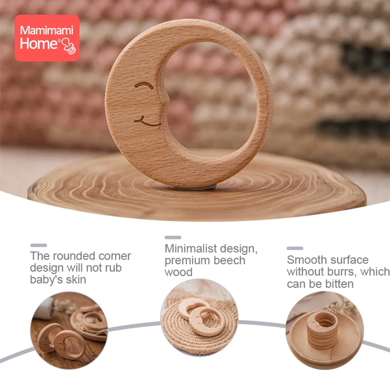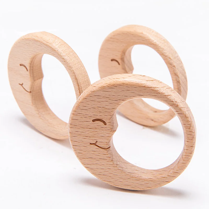 3 шт., Детские Прорезыватели, цепочка-пустышка, подвески из бука, деревянная луна, BPA бесплатно, дерево, прорезыватель, кольцо, подвеска, аксессуары, Товары для детей, игрушки