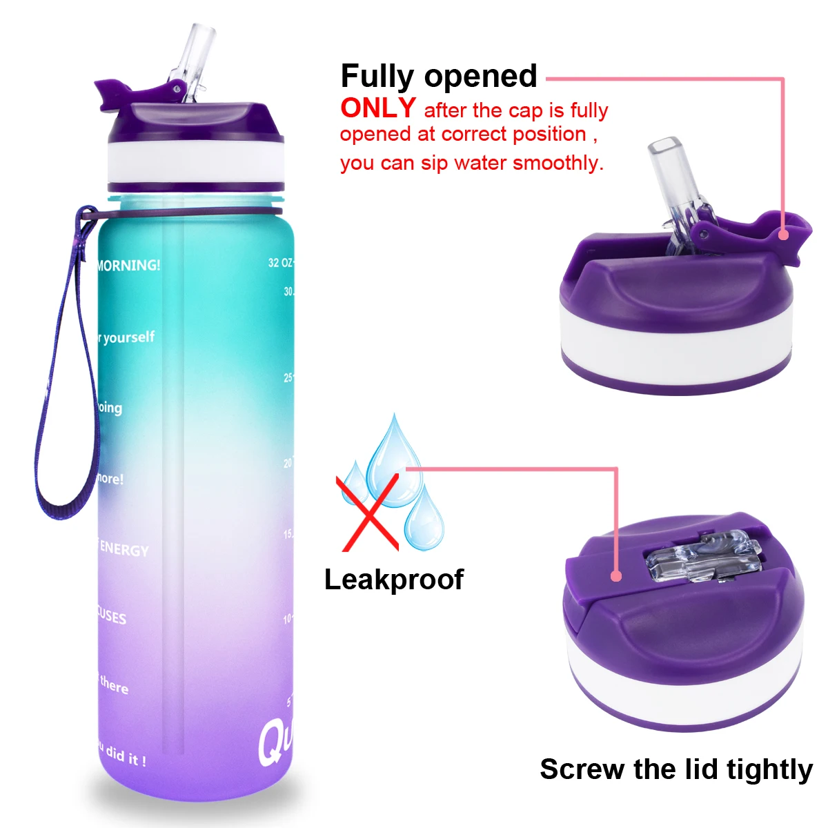 С уникальной вдохновляющей цитатурой и маркером времени бутылка для воды, эта бутылка отлично подходит для измерения вашего ежедневного потребления воды, Напоминая вам оставаться увлажненным и пить достаточное количество воды в течение дня. Необходим для любых фитнес-целей, включая похудение, контроль аппетита и общее здоровье.
