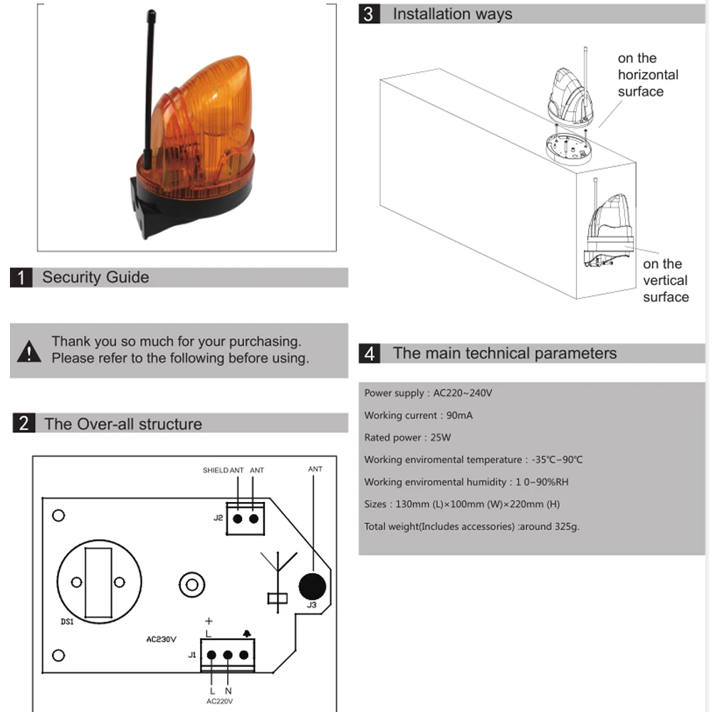 AC/DC 12V26 5V светодиодный мигающий светильник для ворот сигнальная лампа для распашных ворот открывалка/барьер сигнальная Стробоскопическая мигающая лампа