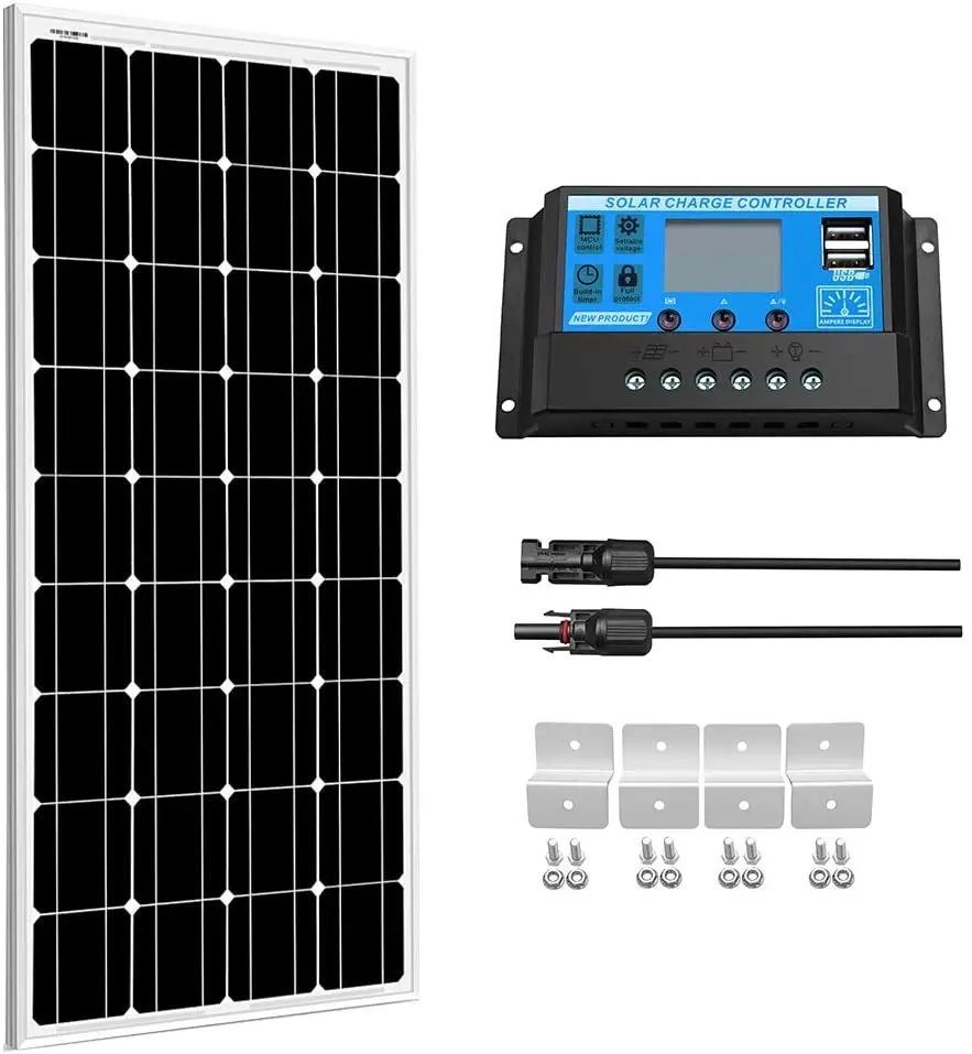 (1) 1x120 Вт солнечные панели (2) 1x12 V / 24 V 10 A контроллер солнечного заряда (3) 1x3 м удлинитель с PV вилками и гнездами (4) 1 х 3 м кабель-удлинитель с мужского и женского пола Аллигатор вилки (5) 1 комплект кронштейна