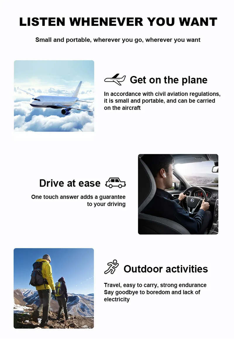 Спецификация продукта: 1. Вес изделия: 5-6 г (один наушник). 2. Время работы: около 3-4 часов. 3. Время работы в режиме ожидания: 200 ч 4. Время зарядки: 1-1,5 часов. 5. Емкость аккумулятора одного наушника: 30 мА · ч. 6. Зарядное устройство Betty: 200 мАч. 7. Беспроводное расстояние: 12 м. 8. Совместимые мобильные телефоны: наушники совместимы с Android, IOS, Microsoft и т. д., 100% мобильных телефонов с голубым зубом. Упаковочный лист: 2 * мини Bluetooth наушники 1 * зарядное устройство 1 * USB кабель для зарядки (освещение) 1 * Руководство пользователя Особенности продукта: 1. Прослушивание песен и звонков, поддержка прослушивания песен и звонков, 2. Номер звонящего, последний код обратного звонка, полный интеллектуальный китайский и английский тон подсказки, включение питания, сопряжение, выключение и выключение телефона и т. Д. 3. Каждый раз, когда bluetooth-гарнитура подключается к телефону, bluetooth-гарнитура автоматически подключается к телефону при включении, что удобно и быстрее. 4. Интеллектуальная Совместимость: Поддержка всех мобильных телефонов с функцией Bluetooth, планшетом, ноутбуком, поем, музыкой Q, фильмами и т. д. 5. Поддержка ios13.2 выше всплывающее окно 6.Bluetooth 5,0 7. Умный датчик в ушах 8. Переименование, GPS позиционирование (поддержка только системы IOS с Bluetooth версии 13,2 и выше) 9,3 реальное окно батареи 10. Сенсорное управление 11. Супер бас 12. Автоматическое включение питания 13. Автоматическое отключение питания 14. Бинауральные звонки 15. Предыдущая песня, следующая песня 16. Поддержка ежедневной водонепроницаемости и защиты от пота (не поддерживает промывание и замачивание) О дропшиппинг 1. Принимаем дропшиппинг, и мы не ставим никаких счетов-фактур, qr-кодов, рекламных акций в пересылке, поэтому не волнуйтесь, просто купите его, мы сделаем все для вас хорошо. 2. Мы гарантируем, что каждое устройство тщательно проверяется перед отправкой, поэтому все продукты могут гарантировать 100% Высокое качество перед отправкой. 3. Скидки доступны для оптовых покупок Большое спасибо!