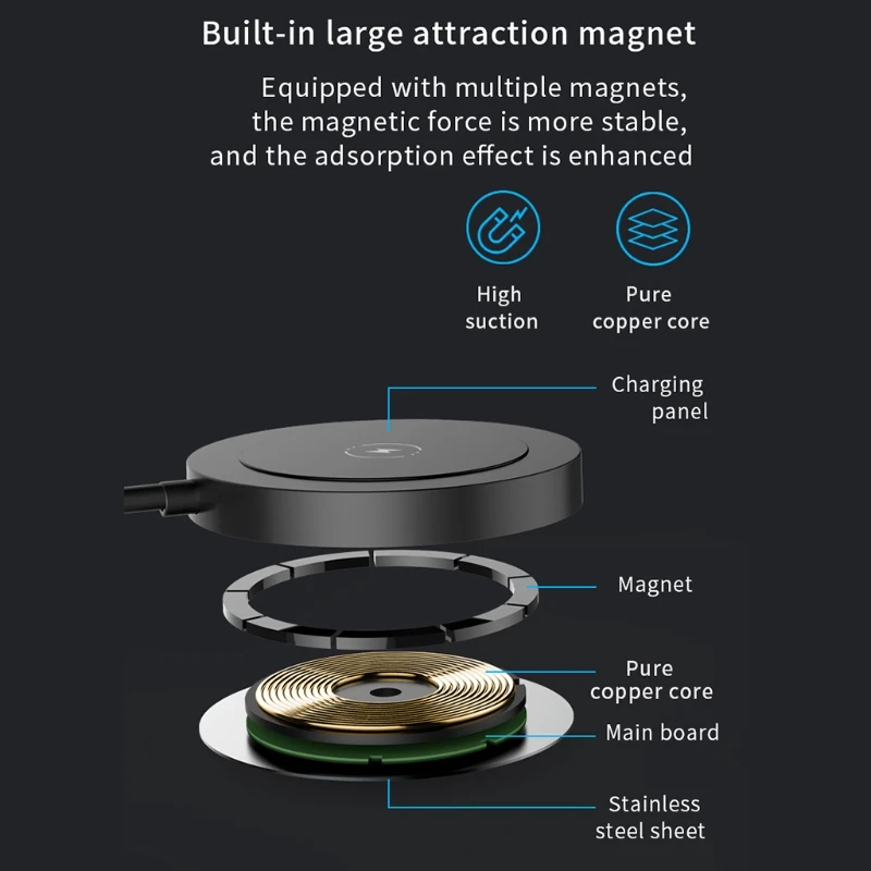 Встроенный высококачественный беспроводной зарядный смарт-чип Qi, беспроводная зарядная подставка 15 Вт может распознавать ваш телефон умно и быстро заряжать.